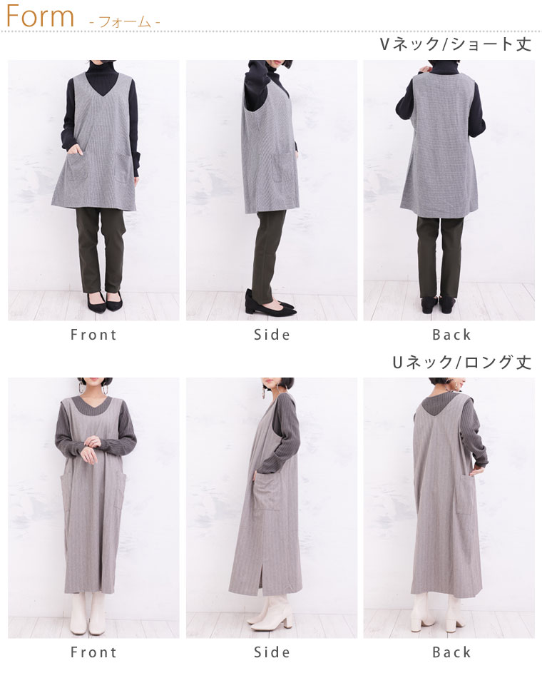 ショート丈はVネックでスッキリ好みの方に、ロング丈はUネックで優しいふんわり感が好みの方にオススメです。