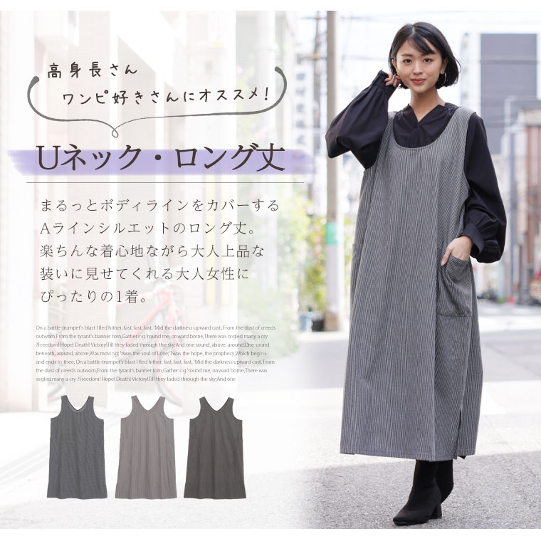 身長:148 丈感:ショートを購入しました。長すぎず丁度よいです。 購入サイズ:3L 着用感:ゆったり 。エプロンの用にすっぽりかぶれます。私はこのシルエットが好きです。急な外出にもこれを着たら様になります。 ストレッチ感:適度にある感じ。ゆったりなので締め付けは感じません カラーについて:上品なグレーで着やすい。 柄も細かい柄で上品だしなんでも合わせやすく長く着れそうです。