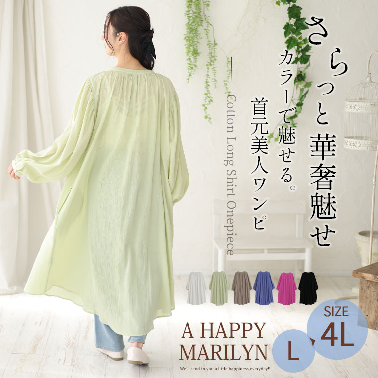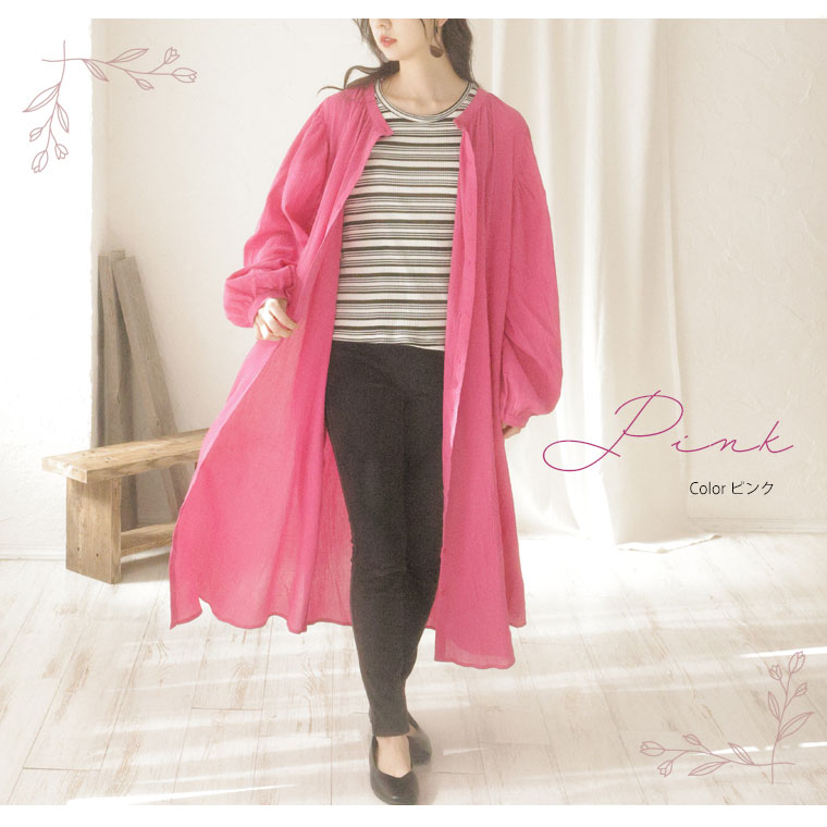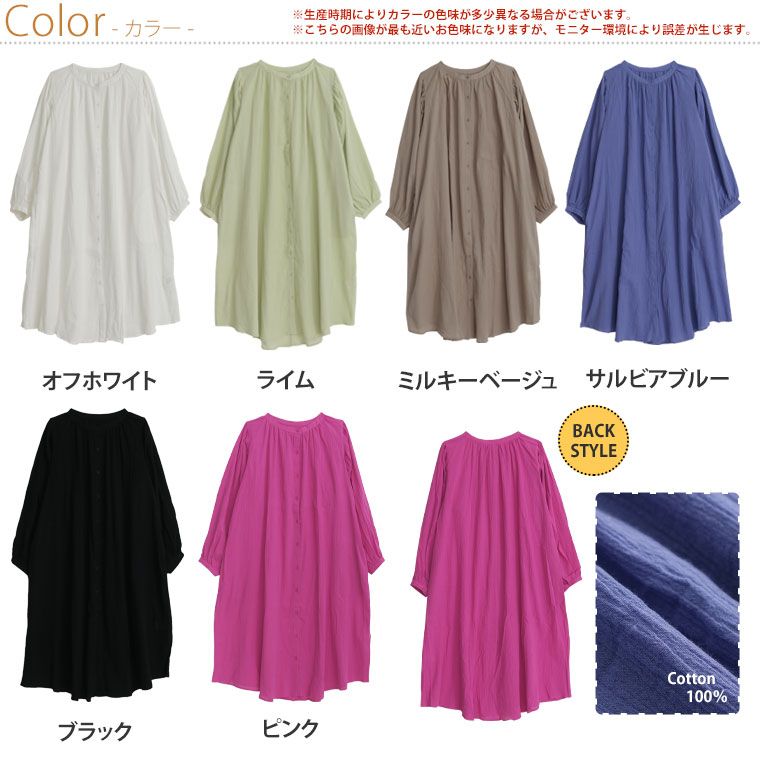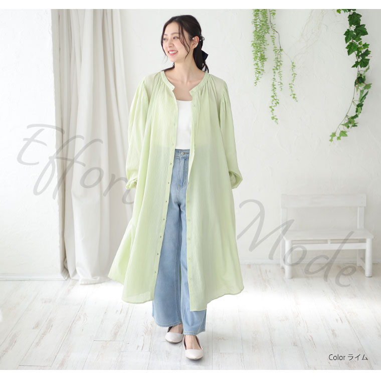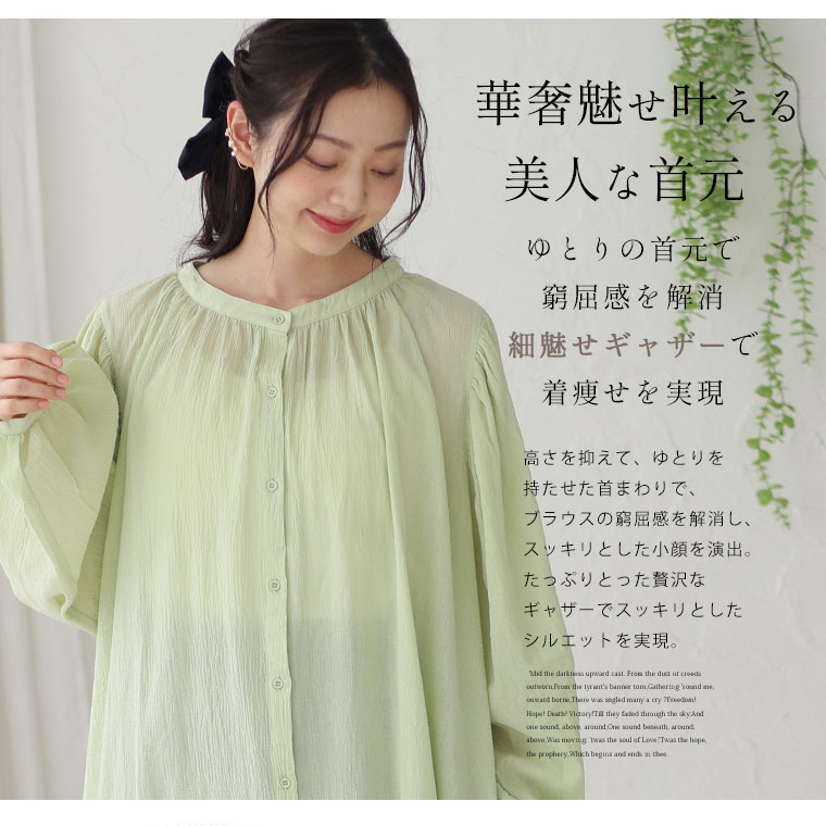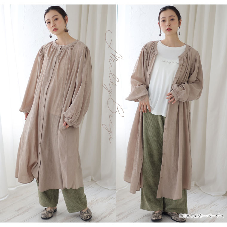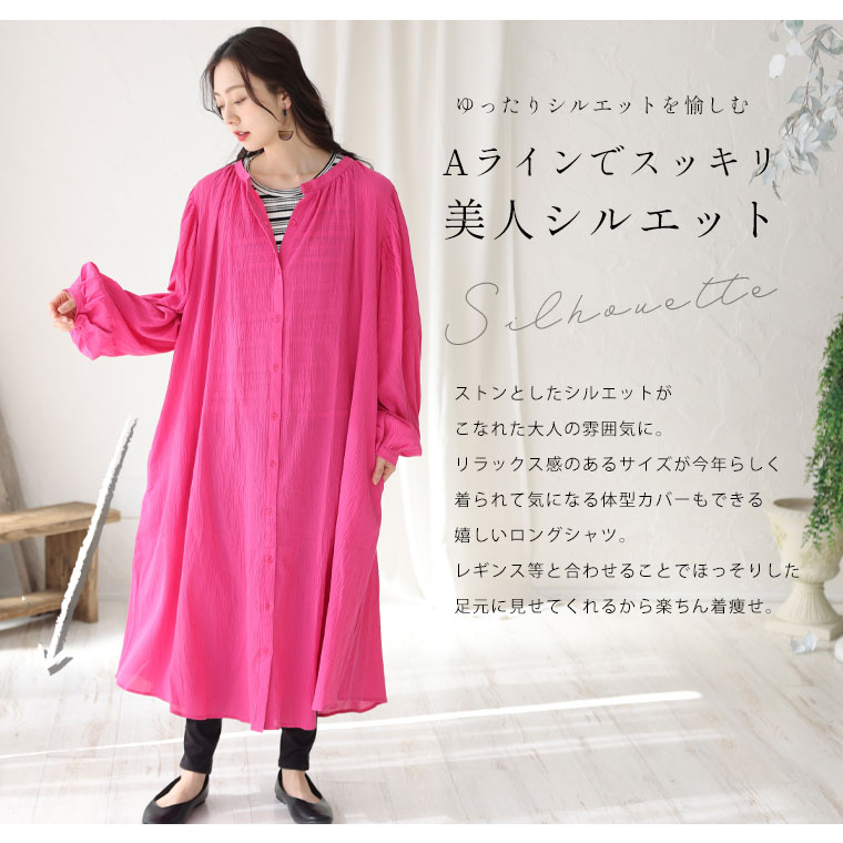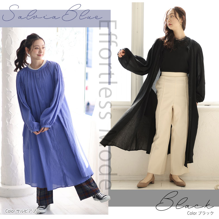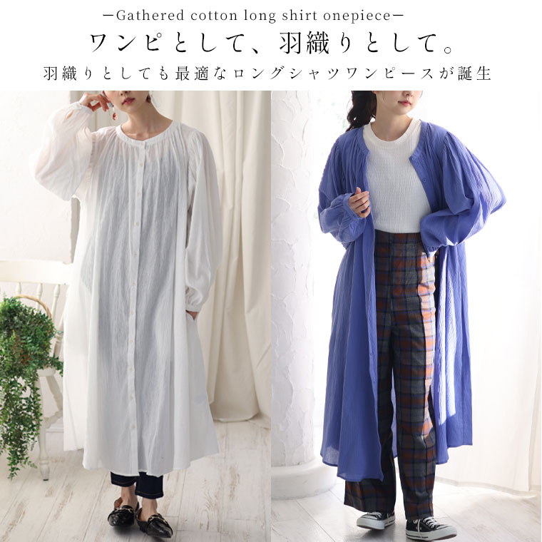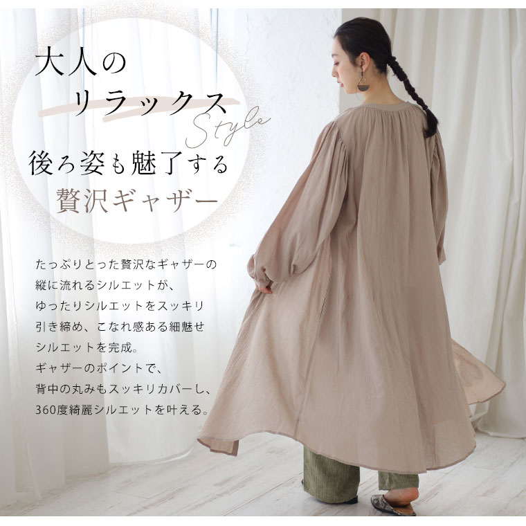 たっぷりギャザーで大人のゆるラフシルエット ギャザーロングシャツワンピース