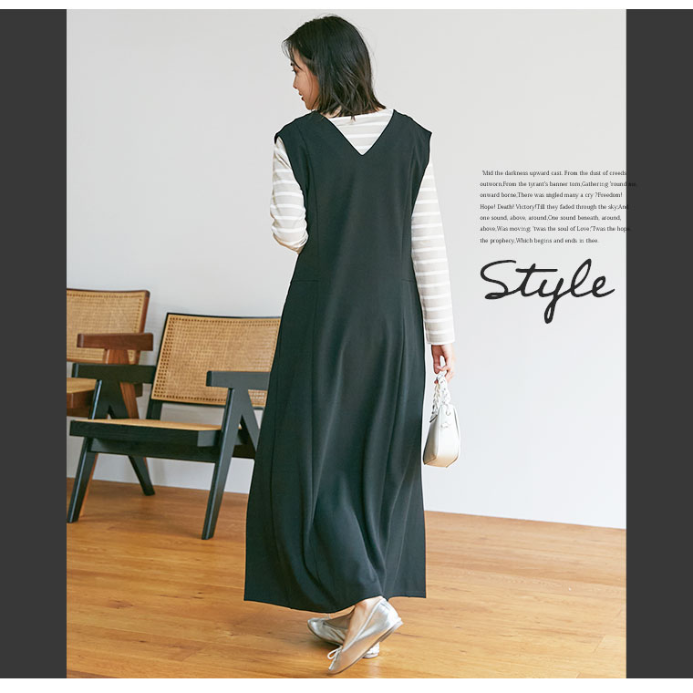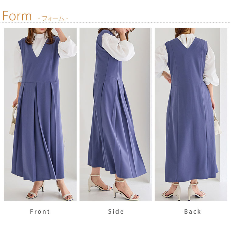 4Lサイズ着用 ■着用感:ちょうどいい、■着丈:床につく、■バスト:ちょうどいい、■腕回り:-、■袖口:-、■袖丈:-、■首回り:ややゆったり、■ウエスト:ちょうどいい、■ヒップ:-、■太もも:- ●私の身長だと少し長いですがヒールに合わせれば大丈夫です。