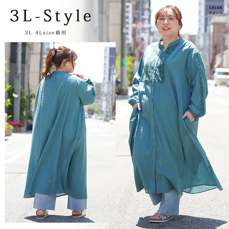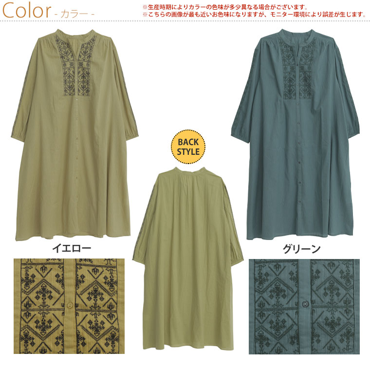 さっと着るだけでコーデがきまる オリエンタル刺繍シャツワンピース