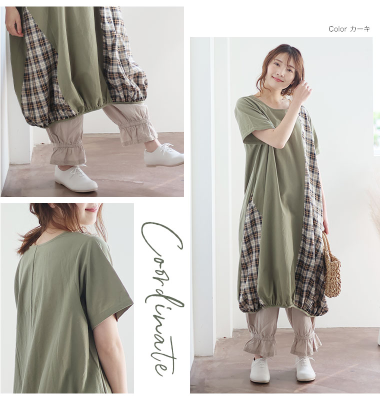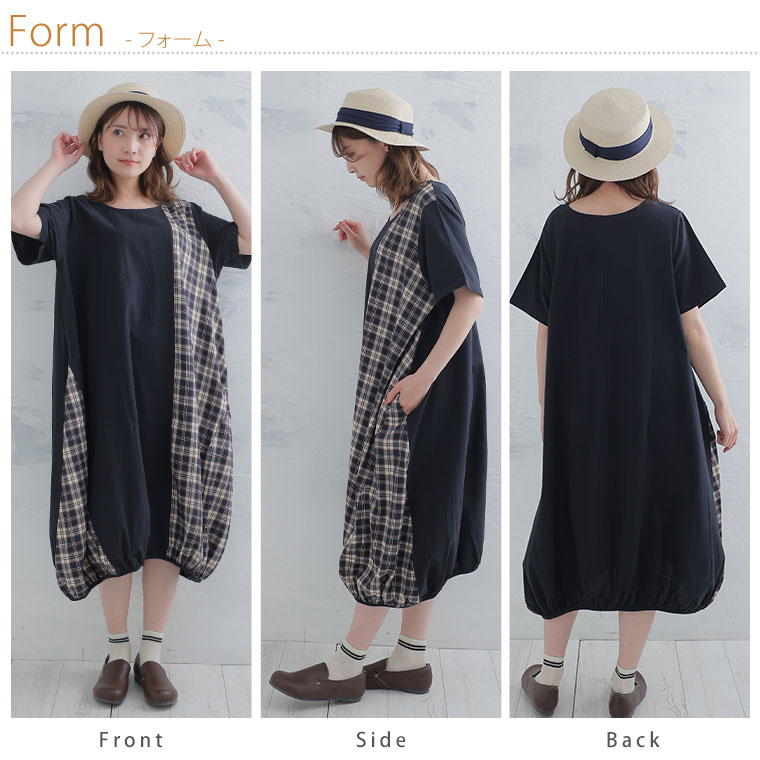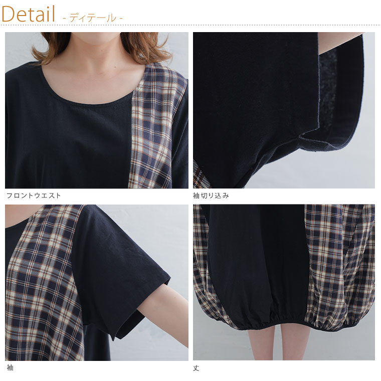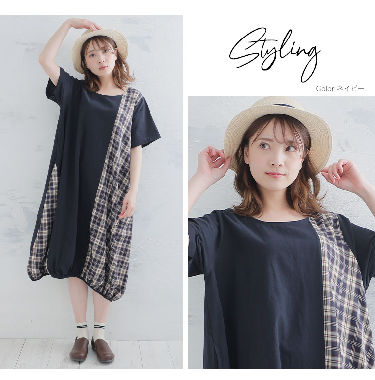 【pastel leaf】チェック柄切替コクーンワンピース