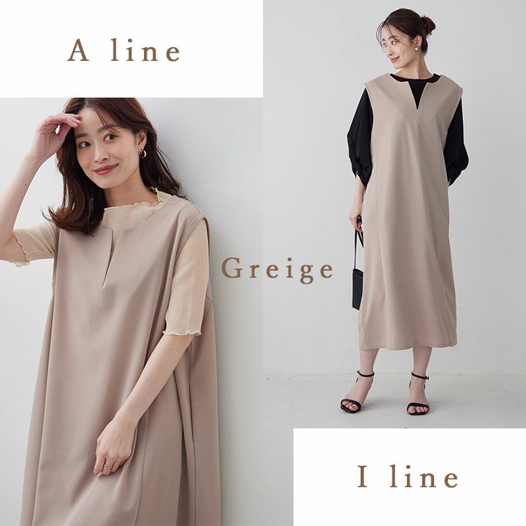ひんやり涼しく汗かいても気にならないイージーケア選べるシルエットキーネックジャンスカ