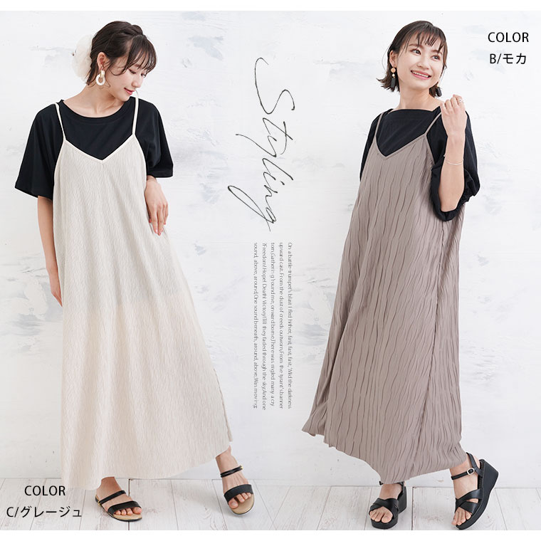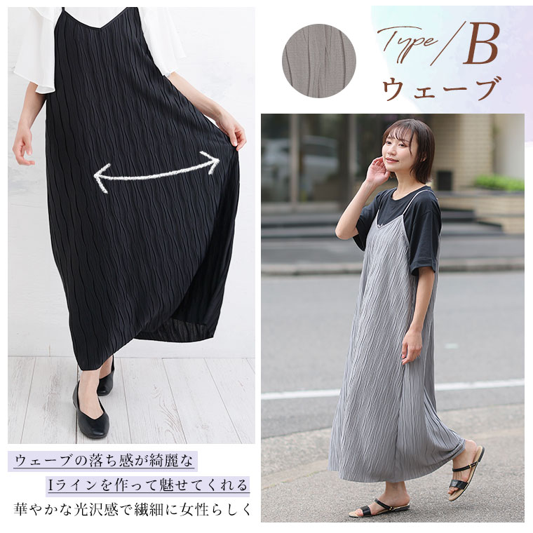 ふわりと広がるほんのりAラインで体型カバー!選べるキャミワンピ3タイプ