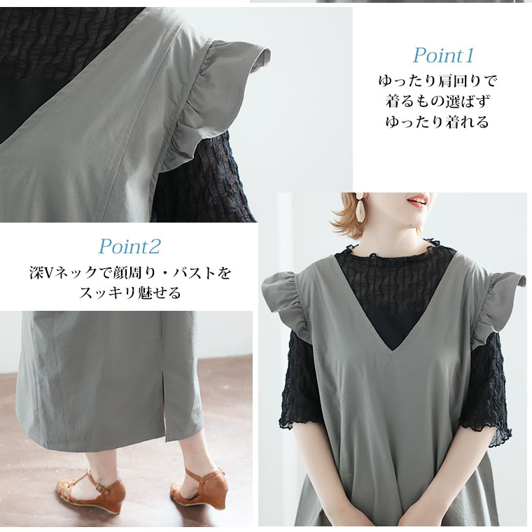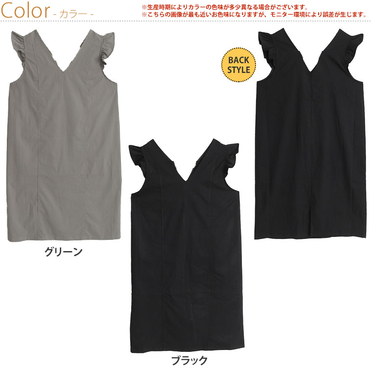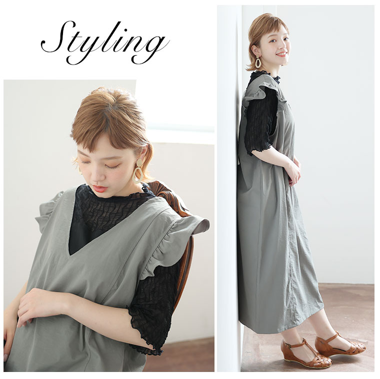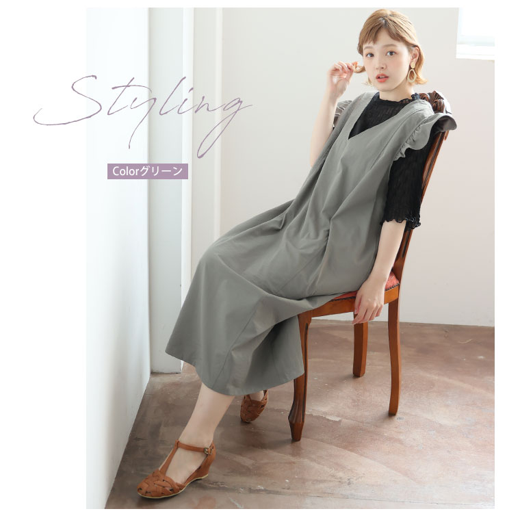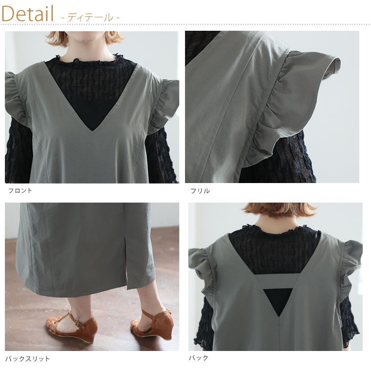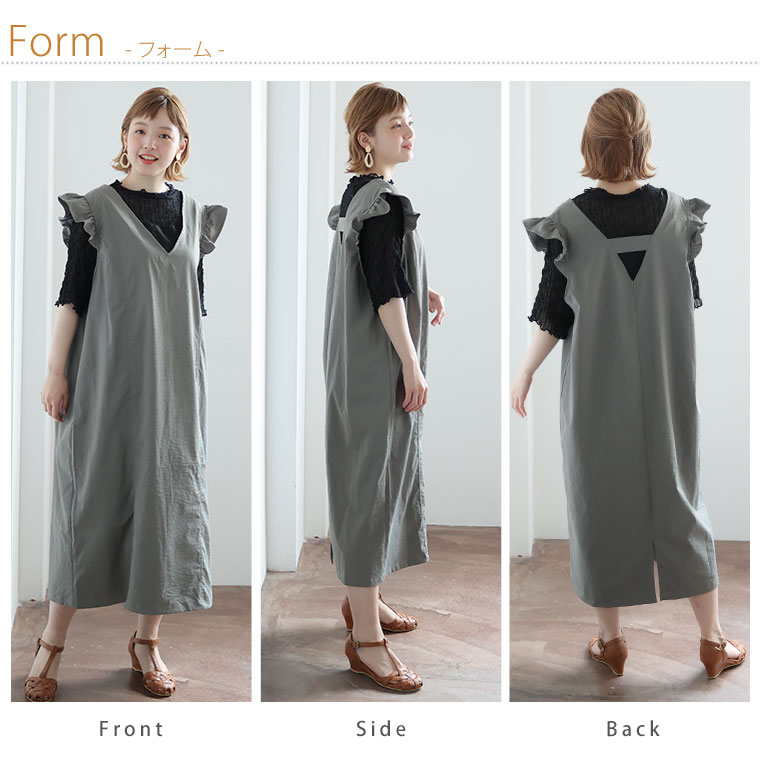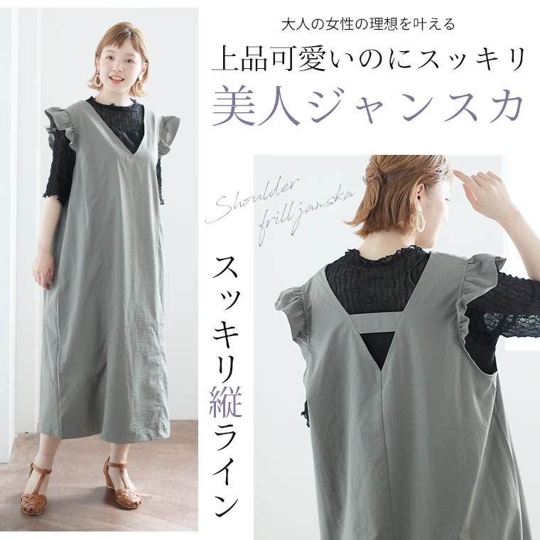 コットンライクでさらりと着れる肩フリルジャンスカ