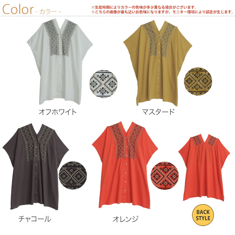 4. 大きいサイズ 刺繍 モモンガ シャツワンピース