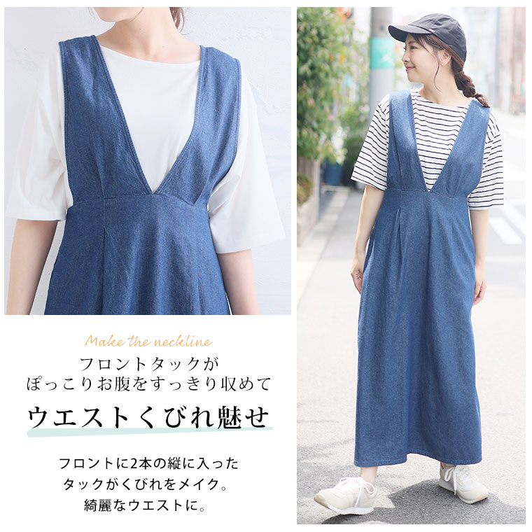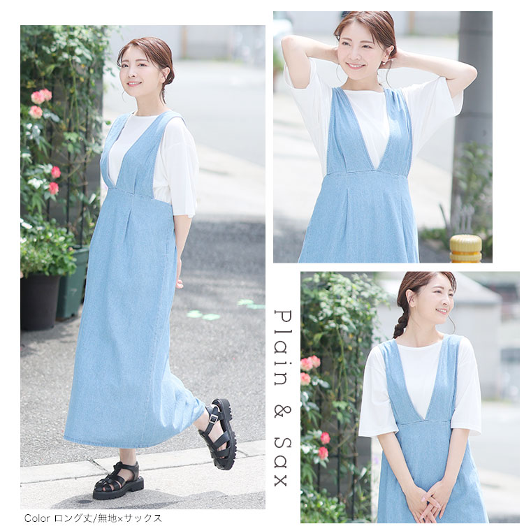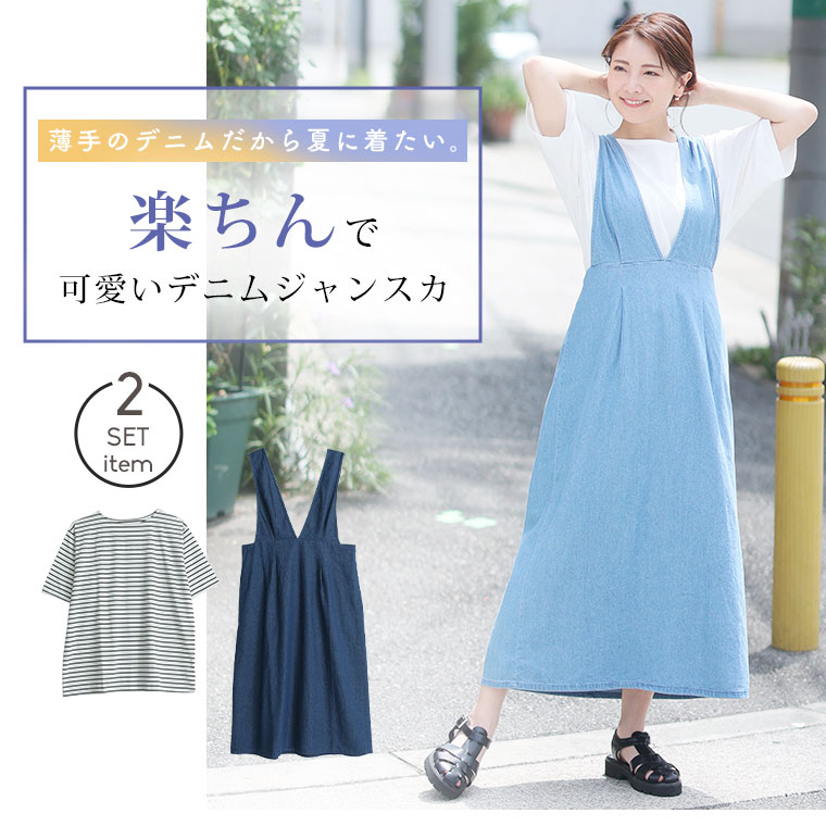 デニムジャンスカ×Tシャツで細魅せシルエットを叶える