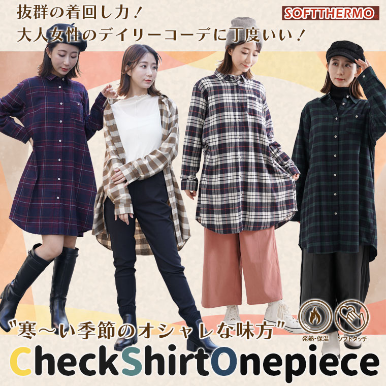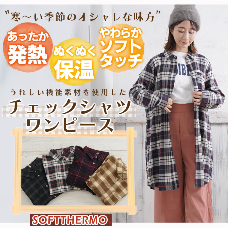 軽くて暖かい”SOFT THERMO”シリーズ レギュラーシャツワンピース
