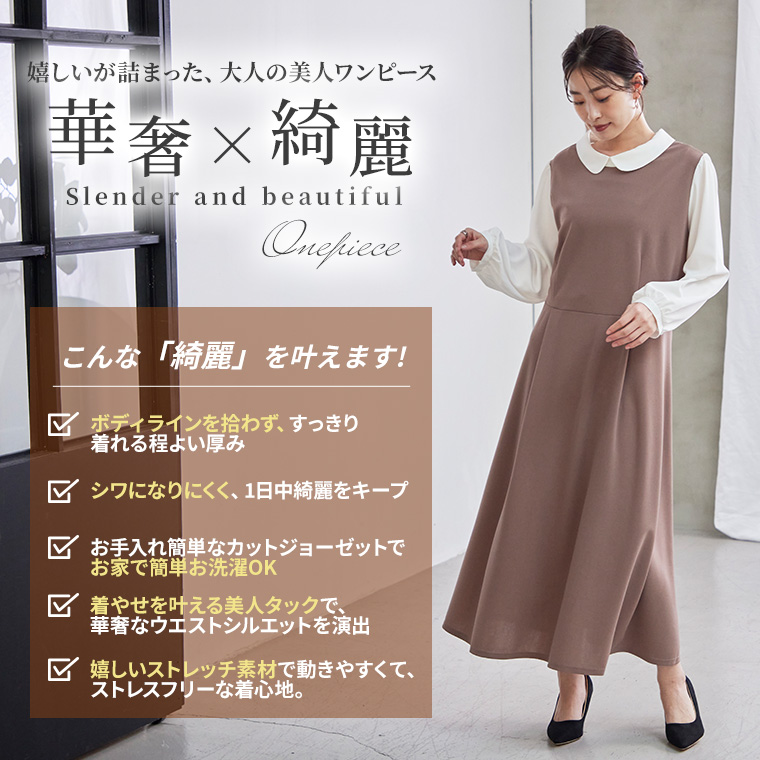 着やせて綺麗と可愛いを叶える! 大人のカットジョーゼット上品美人ワンピース