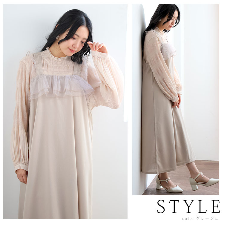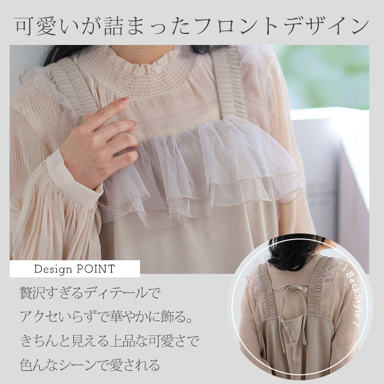 肩胸フリルジョーゼットキャミワンピース