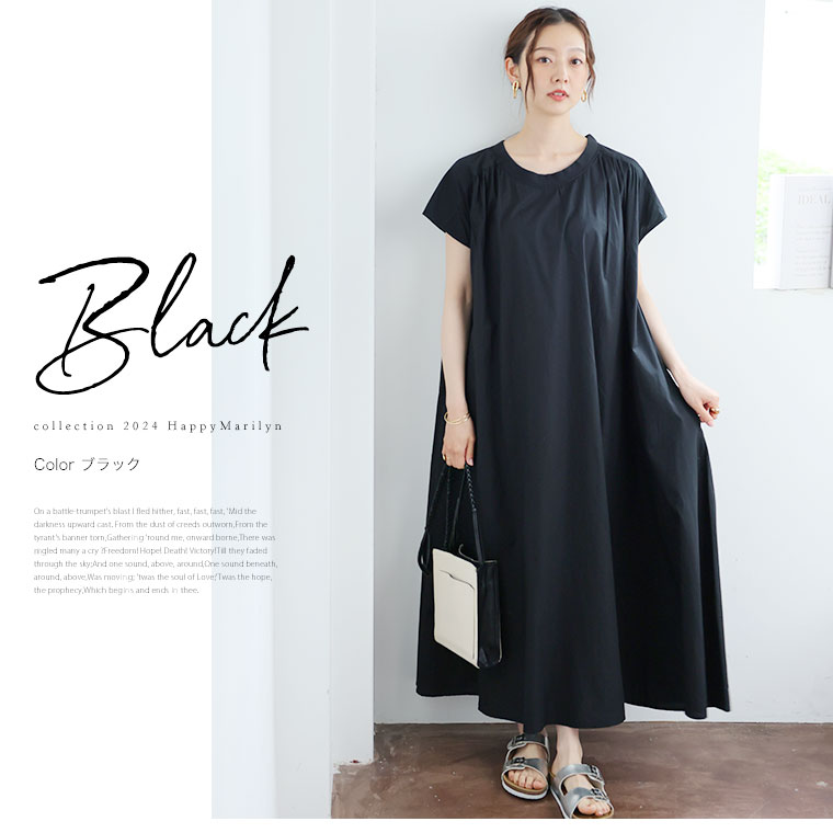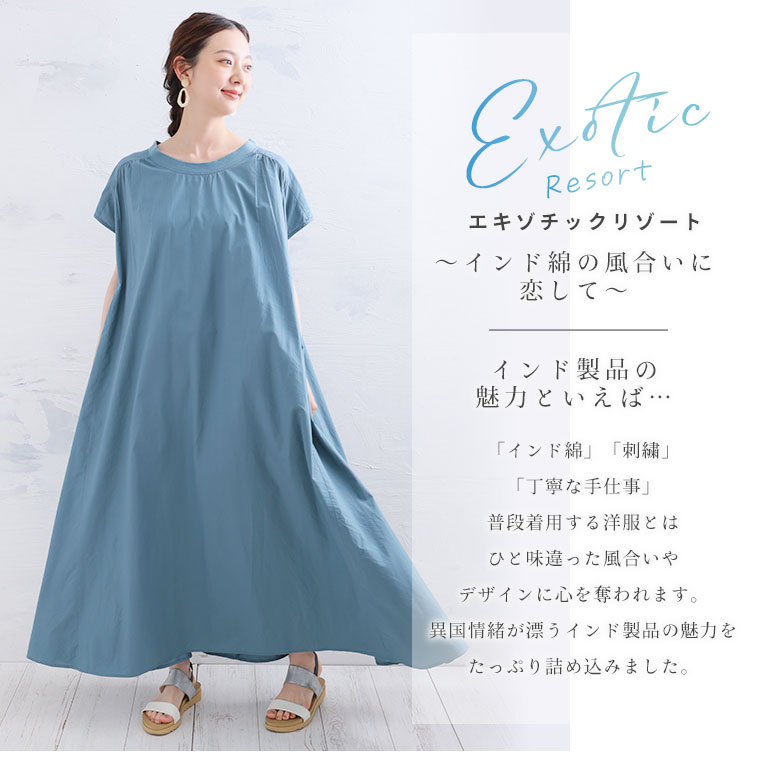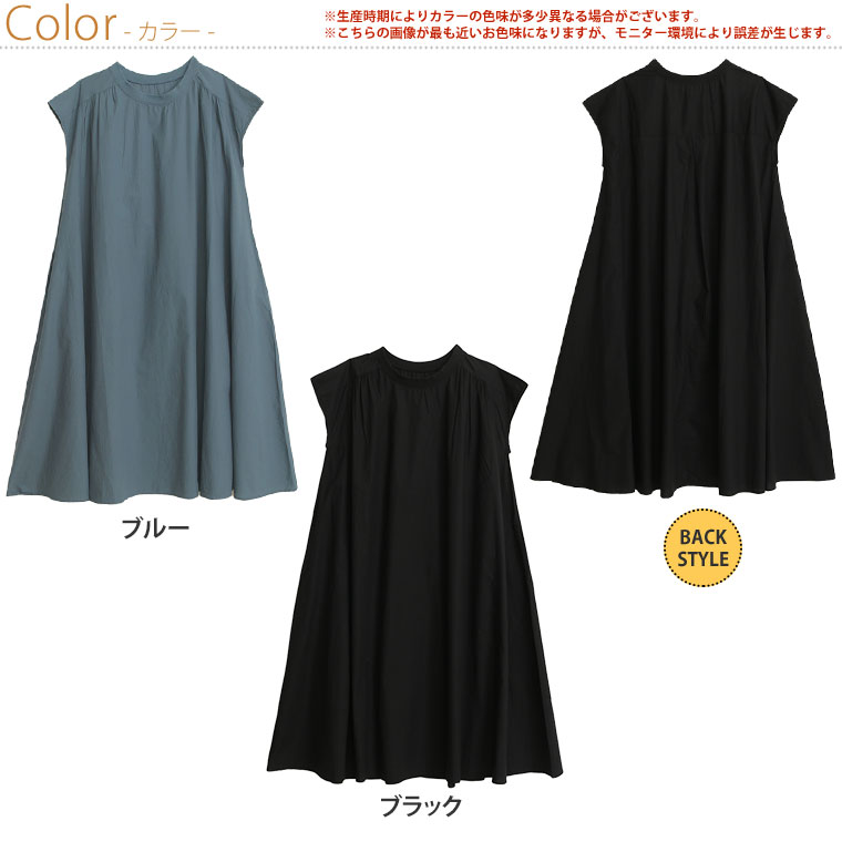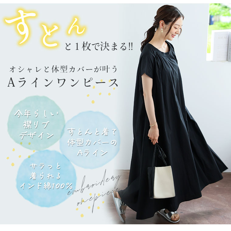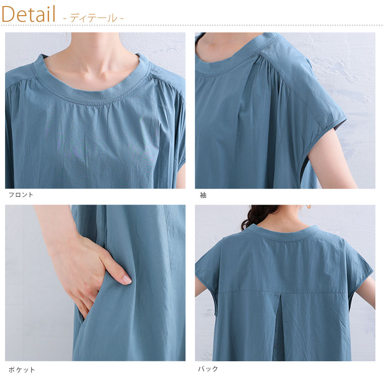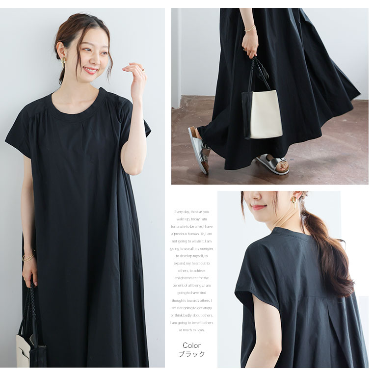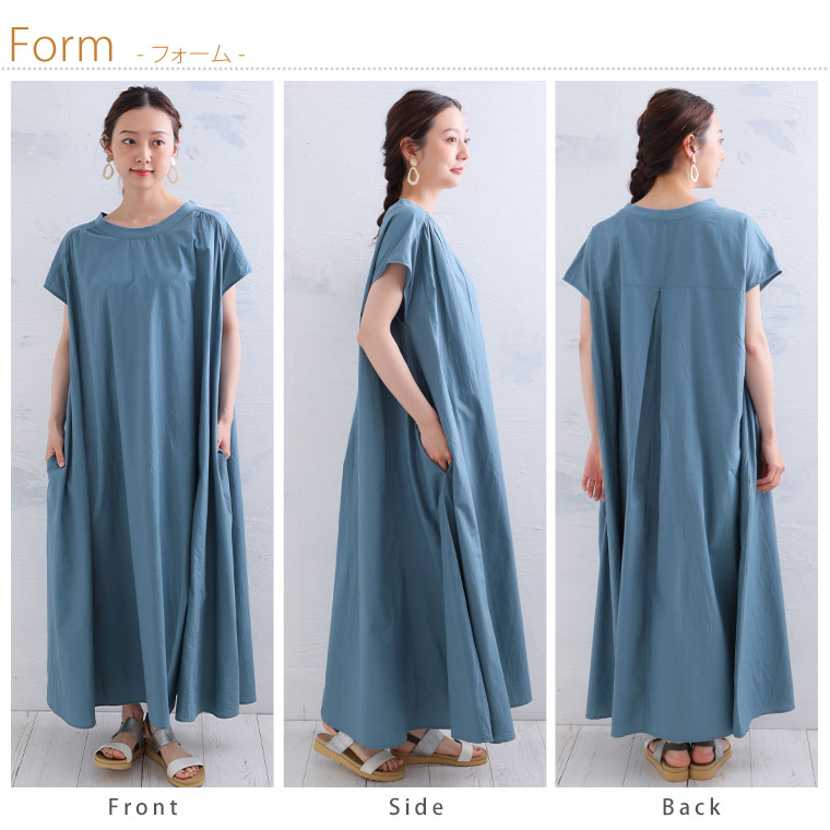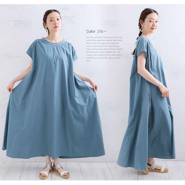 襟リブで首元ゆったり5分袖ふんわりワンピース