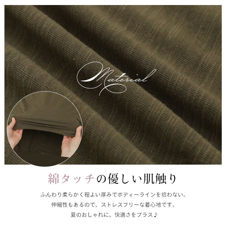綿タッチのストレッチ生地で手触りも着心地もいい