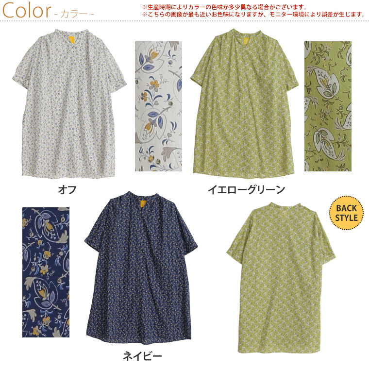 4. 大きいサイズ 【les Olivades】 綿100% Aライン Vネック コットン 花柄 ワンピース