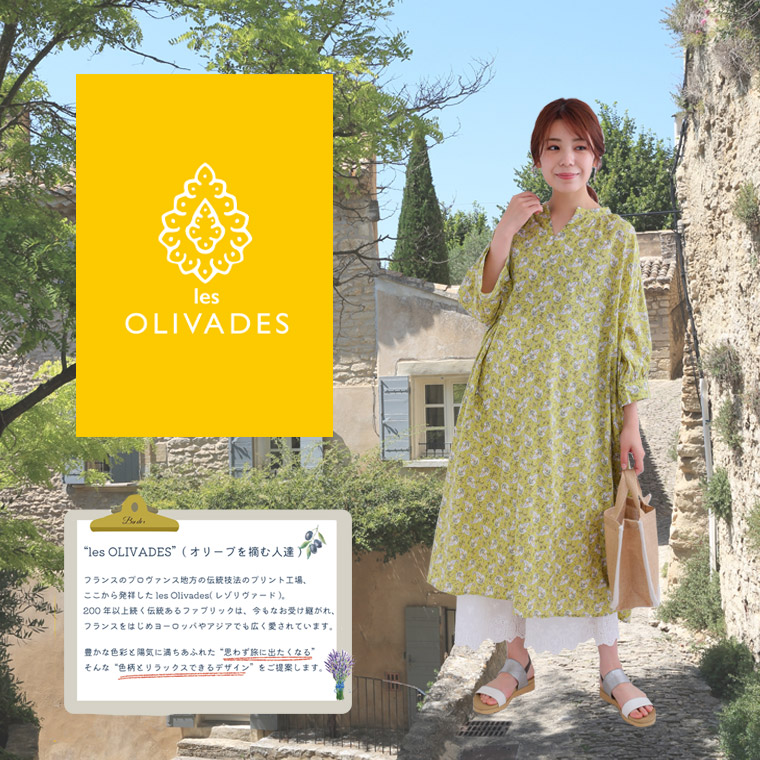 【les Olivades】さらり綿100%のAライン花柄ワンピース