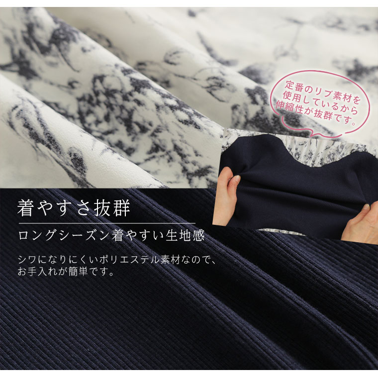 伸縮性抜群なリブ素材で着やすさ抜群 ロングシーズン着やすい一枚