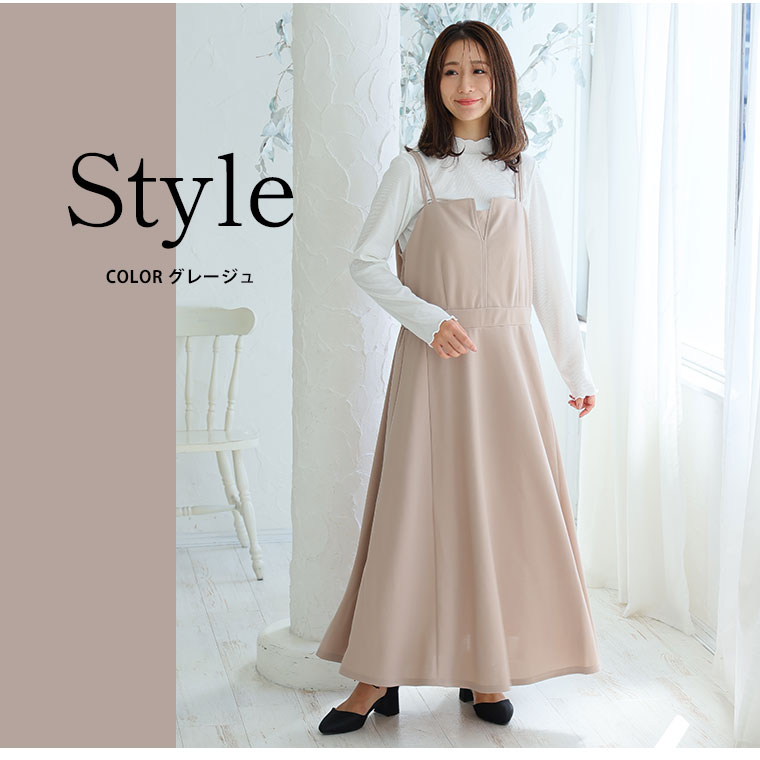 ■着用感:ちょうどいい、■着丈:足首、■バスト:ちょうどいい、■腕回り:ちょうどいい、■袖口:ちょうどいい、■袖丈:-、首回りちょうどいい、■ウエスト:ぴったり、■ヒップ:、■太もも: ●長めの着丈で大人っぽくエレガントに着られます!ウエストラインがややフィットしますがその効果でメリハリを作ってくれてスタイルが良く見えます。
