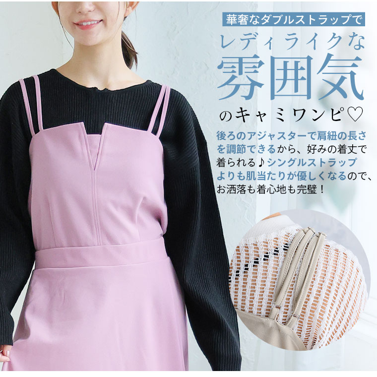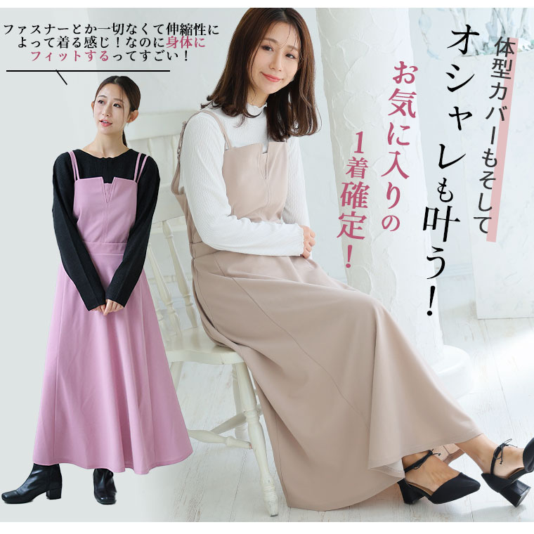 オリジナル ワンピ キャミワンピ LL 3L 4L 5L 6L 秋 秋物 秋服 冬 冬物 冬服 エレガンス 着やせ ぽっちゃり ゆったり プラスサイズ ハイウエストでスタイル抜群! 骨格ウェーブ 優勝 キャミワンピース