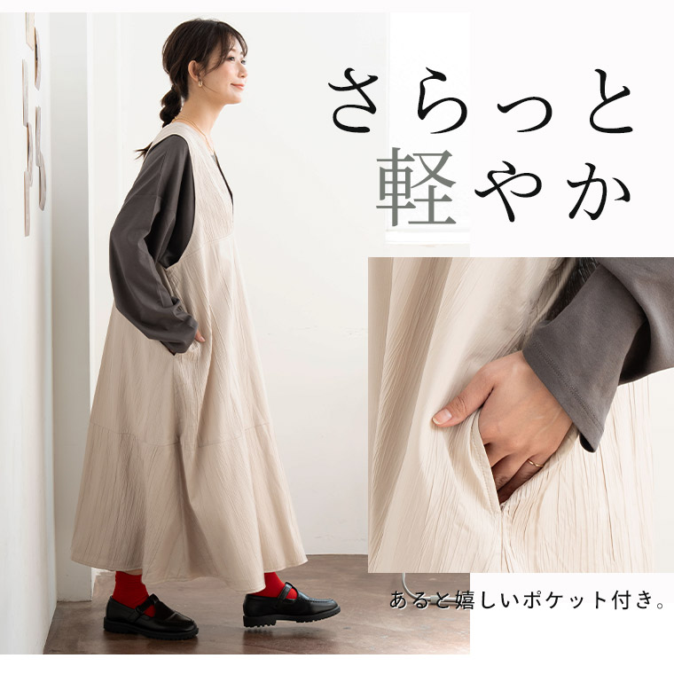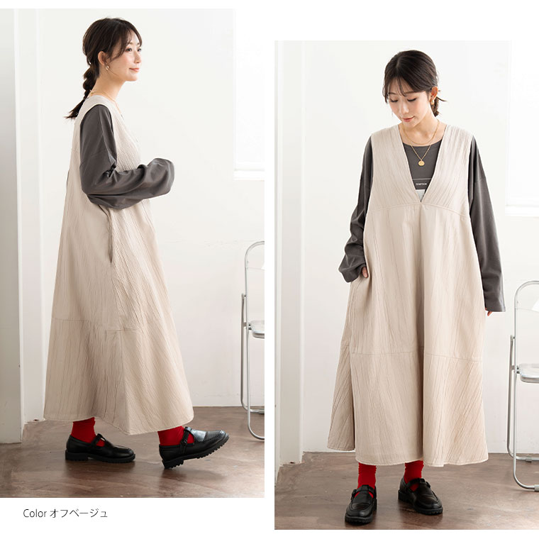 深vネックでスッキリ魅せる 大人のジャンスカ