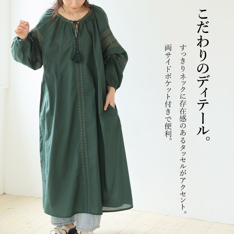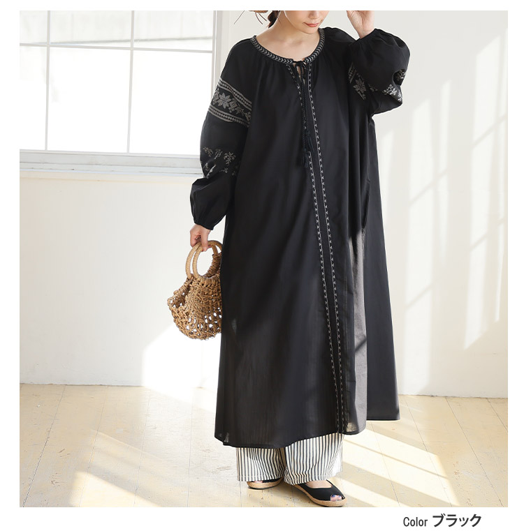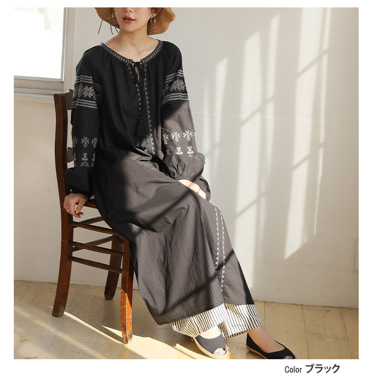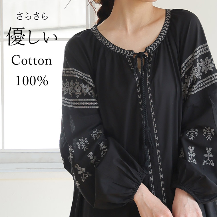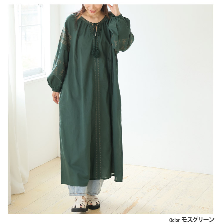 綿100% ゆったり刺繍ワンピース