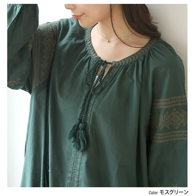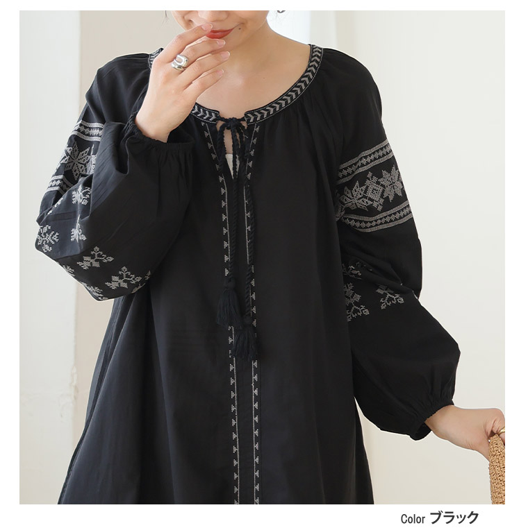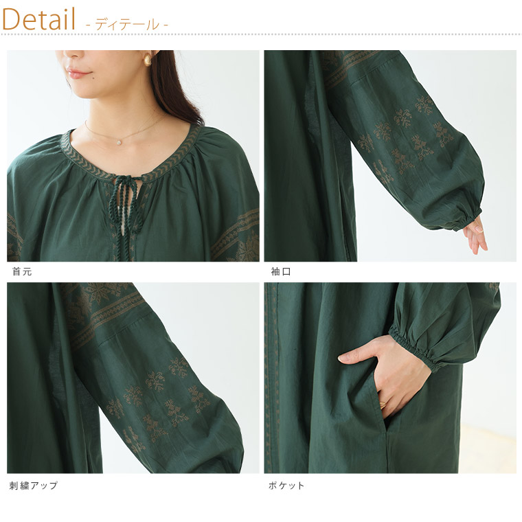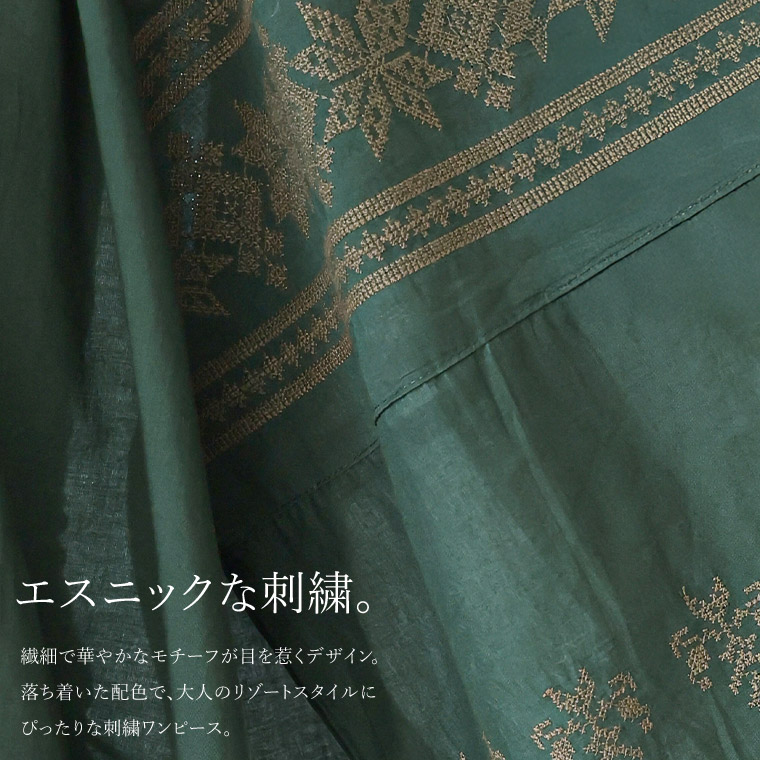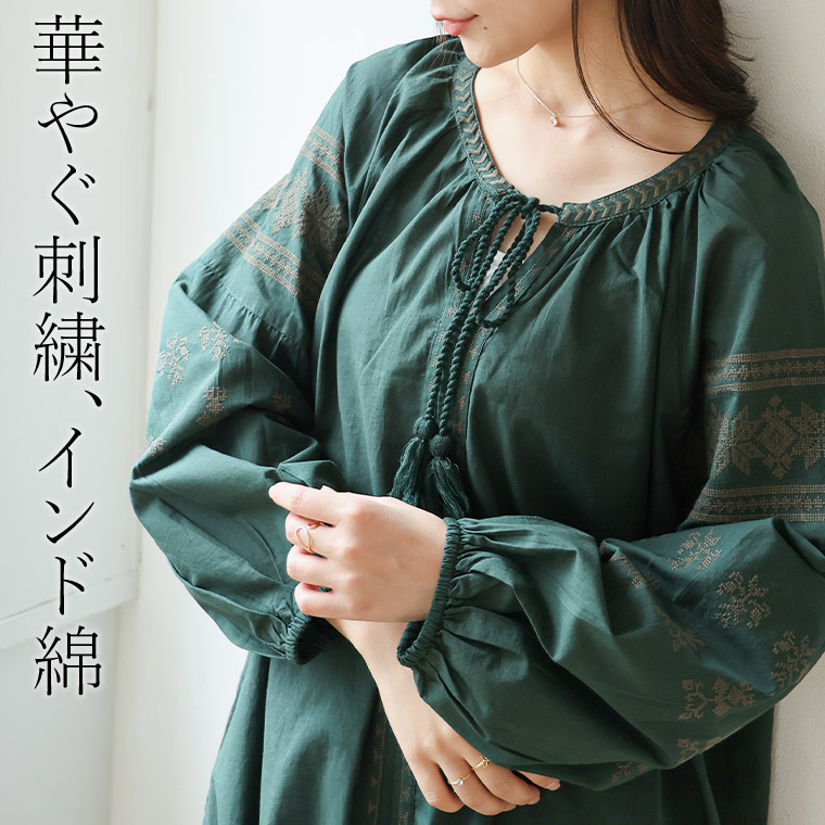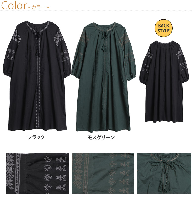 綿100% ゆったり刺繍ワンピース