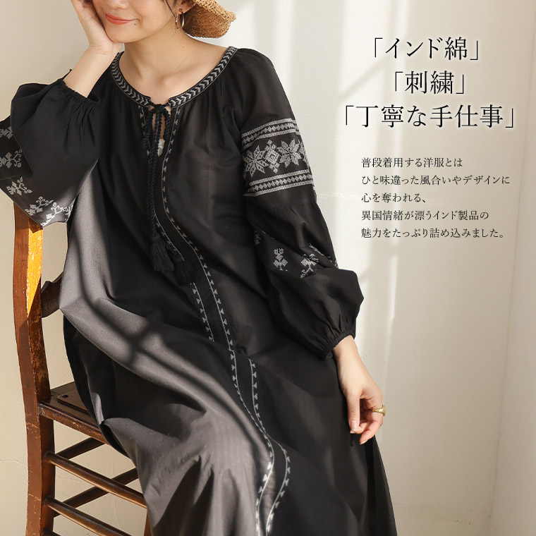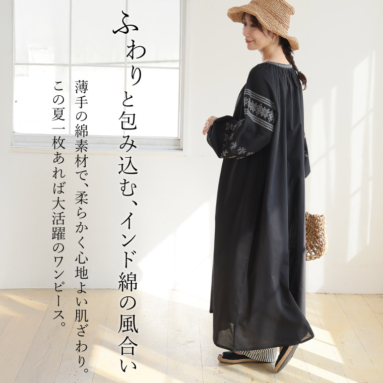 大きいサイズ 【新作◆4月11日販売】 インド綿 刺繍 コットン ロングワンピース | 大きいサイズの通販ならハッピーマリリン