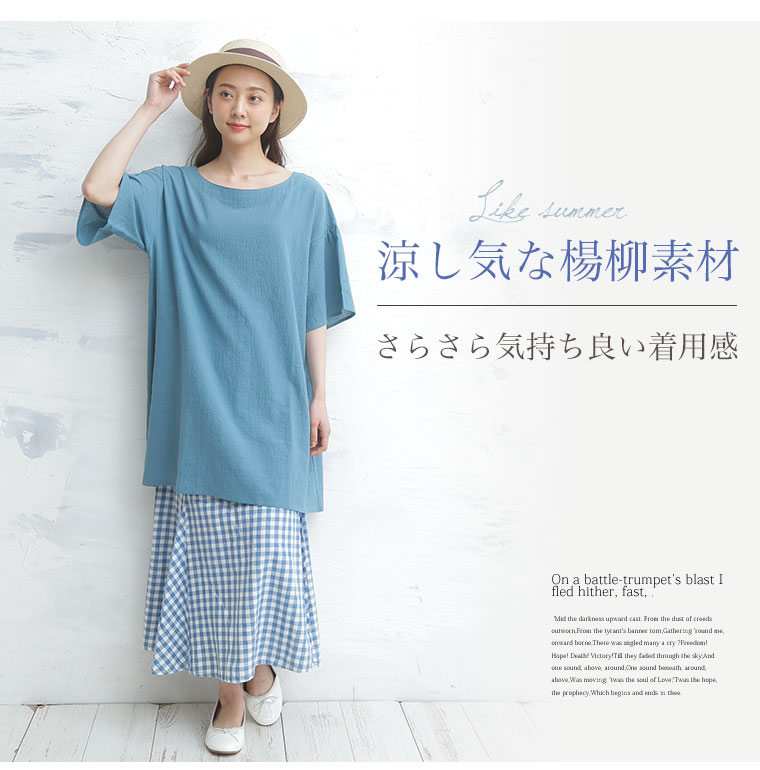 一枚で夏の装い。ゆったり着れて体型カバーが嬉しい
