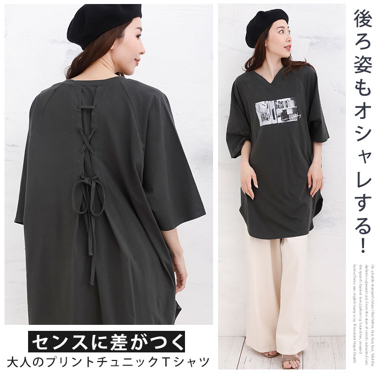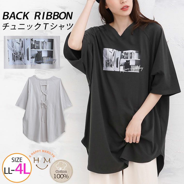 綿100%で着心地がいい。バックリボンチュニックTシャツ