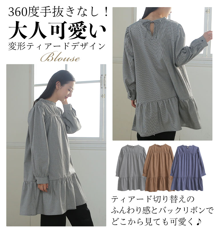ティアード切り替えのふんわり感 バックリボンでどこからでも可愛い