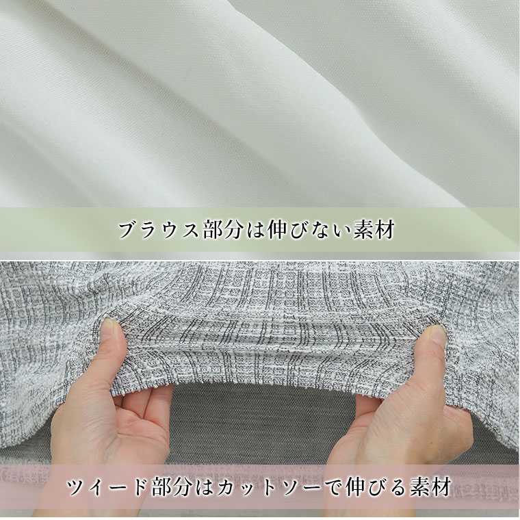 気になるヒップまで隠れて安心 伸びるツイード素材で楽々