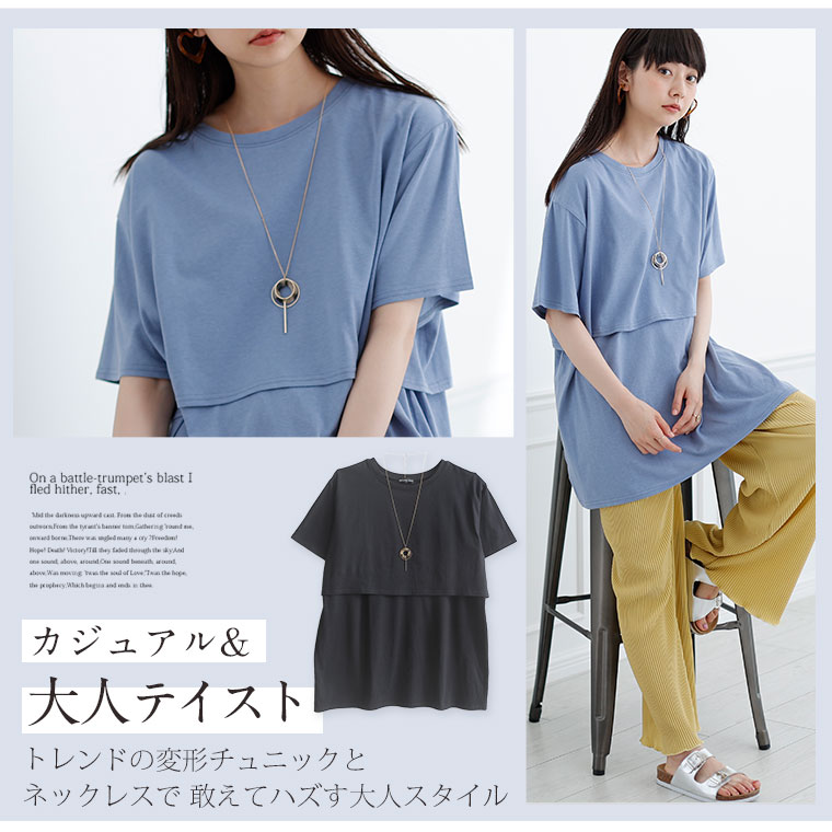 ネックレス付き お洒落に魅せる変形チュニック