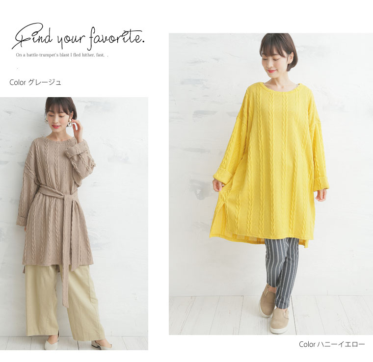 ハニーイエロー購入。冬アイテムにしてはとても鮮やかでした。編み編みが細く見せてくれました。