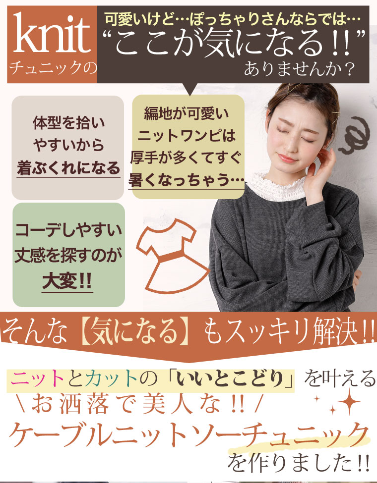 5. 大きいサイズ ぽっちゃりさんの為の! ニットとカットのいいとこどり! ワイドスリーブ ニットソー 長袖 チュニック