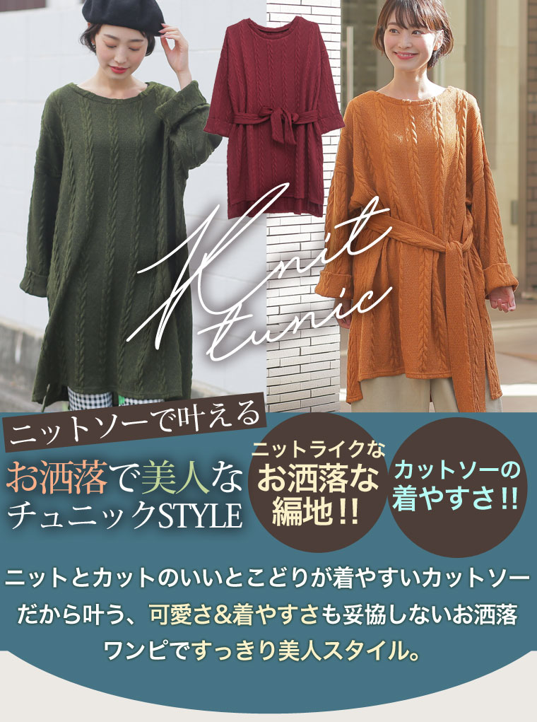 ウエストリボンでメリハリスタイル!!ゆるっと可愛い大人の細魅せチュニック