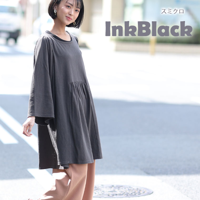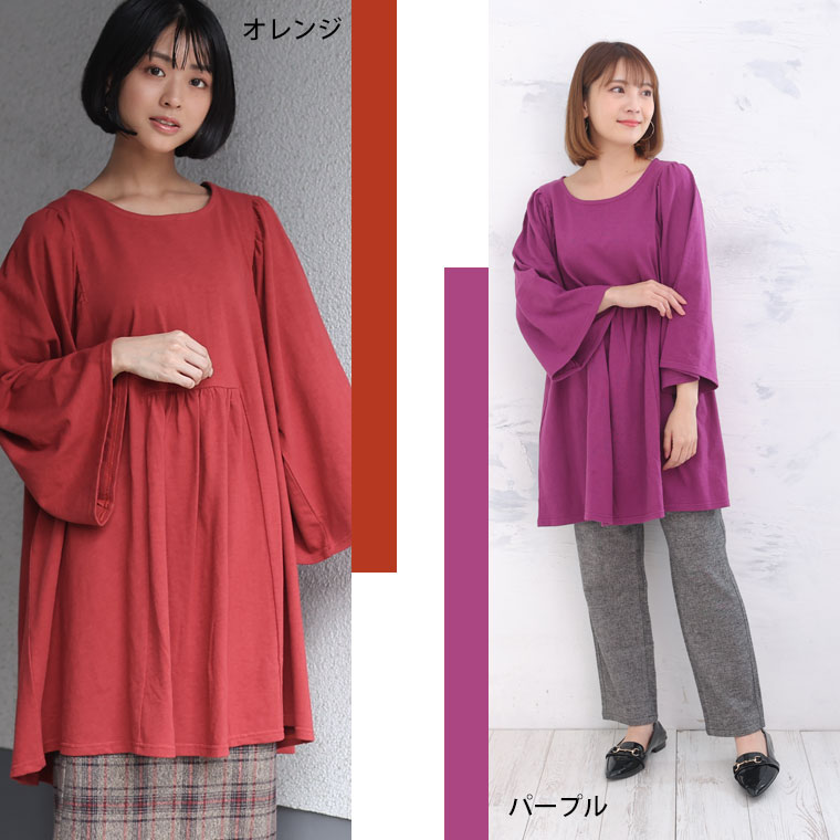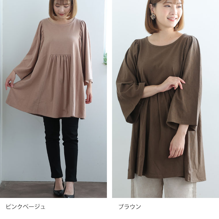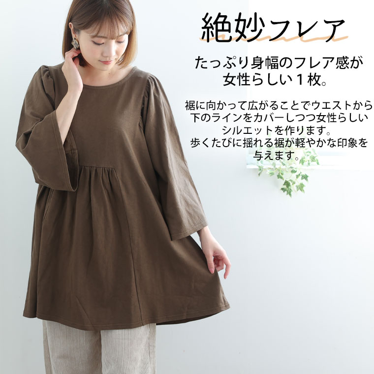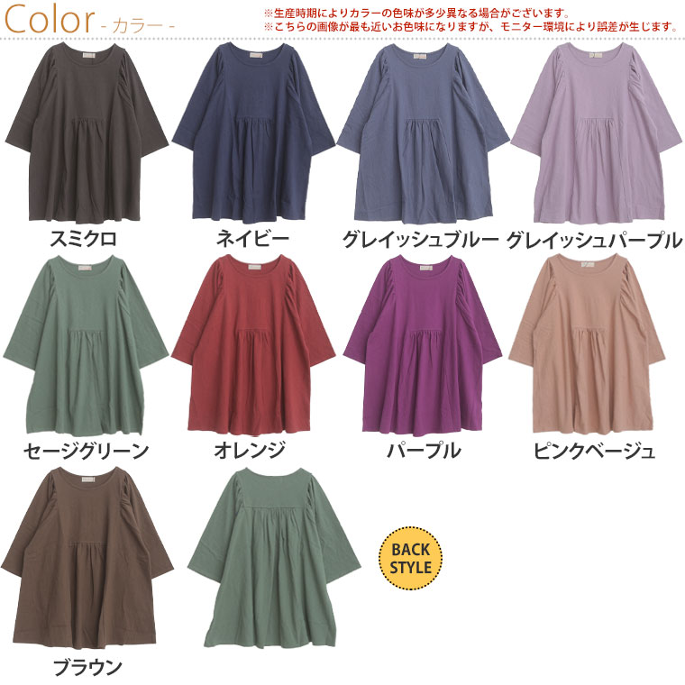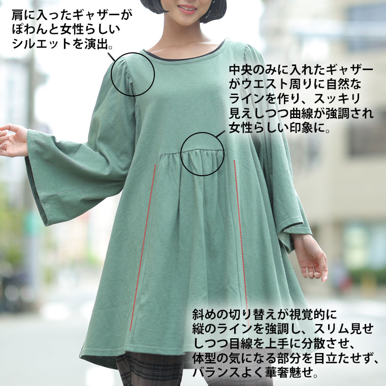 オリジナル チュニック カットソー LL 3L 4L 5L 6L 秋 お腹 太もも 胸周り 二の腕カバー お尻 腰周り さらりと綿100% 大人の七難神隠し お腹ふんわりカバー コットンギャザーチュニック