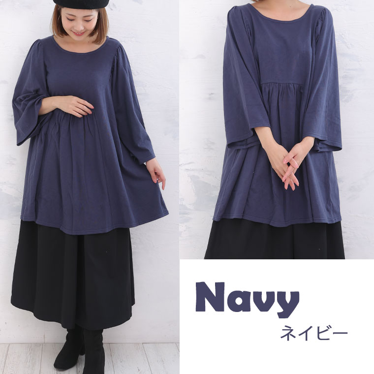 6. 大きいサイズ さらりと綿100% 大人の七難神隠し お腹ふんわりカバー コットンギャザーチュニック