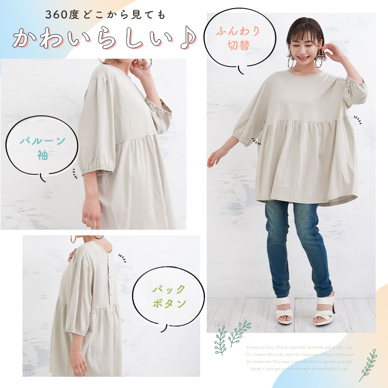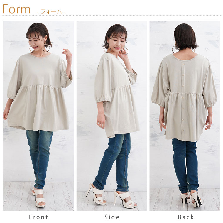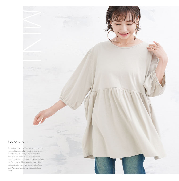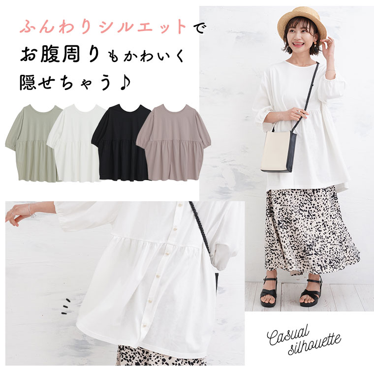 綿100% ぽっこりお腹をキャザーでキレイにカバーできちゃうTOPS