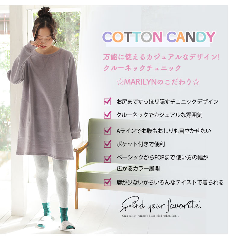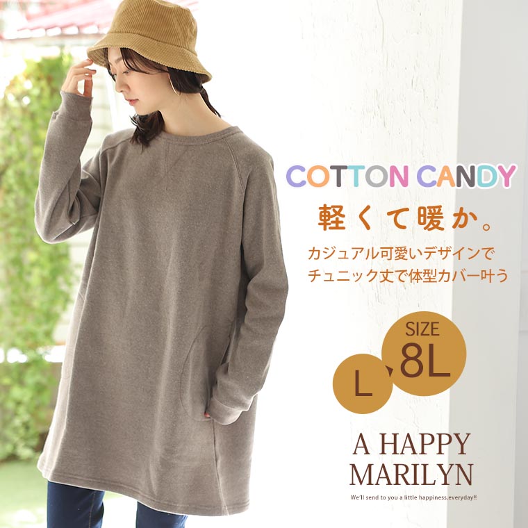 6. 大きいサイズ COTTON CANDY 裏起毛 クルーネック チュニック
