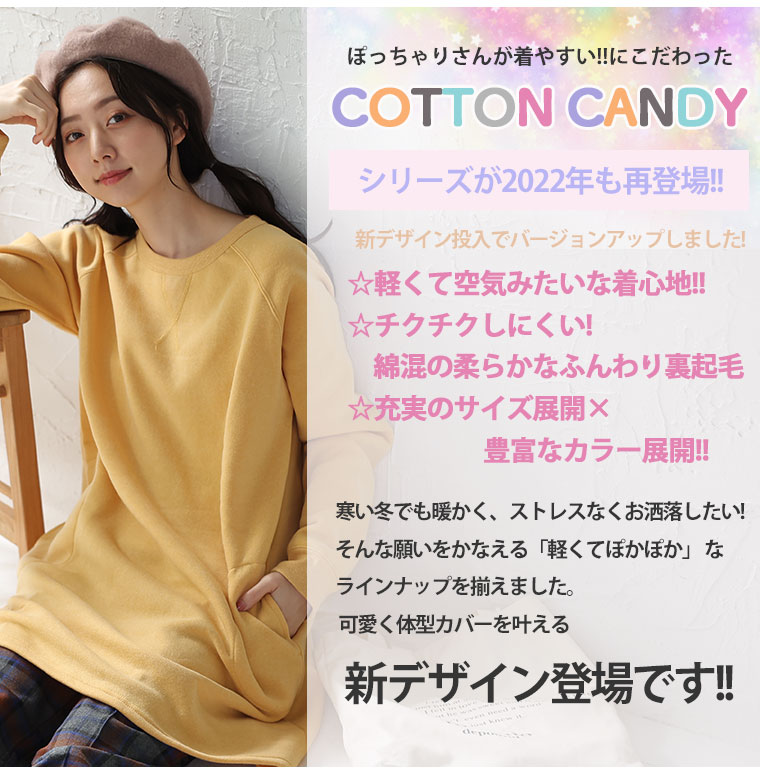 大きいサイズ COTTON CANDY 裏起毛 クルーネック チュニック