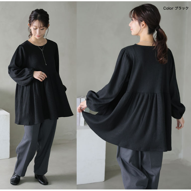 6. 大きいサイズ 【ちょい温シリーズ】 美人に体型カバー ラウンドネック リブ チュニック