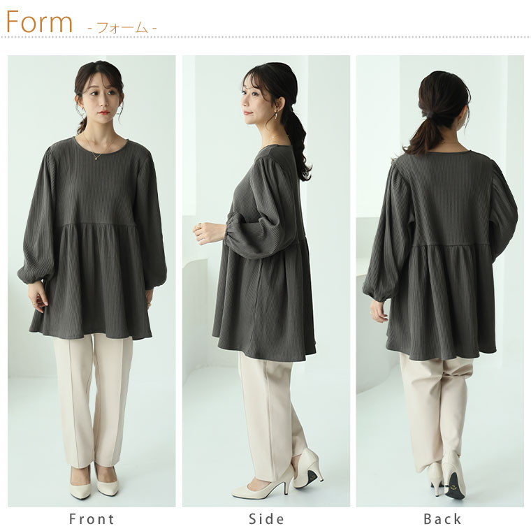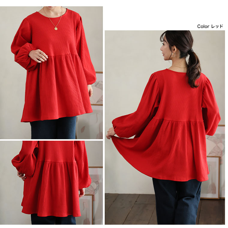 4. 大きいサイズ 【ちょい温シリーズ】 美人に体型カバー ラウンドネック リブ チュニック