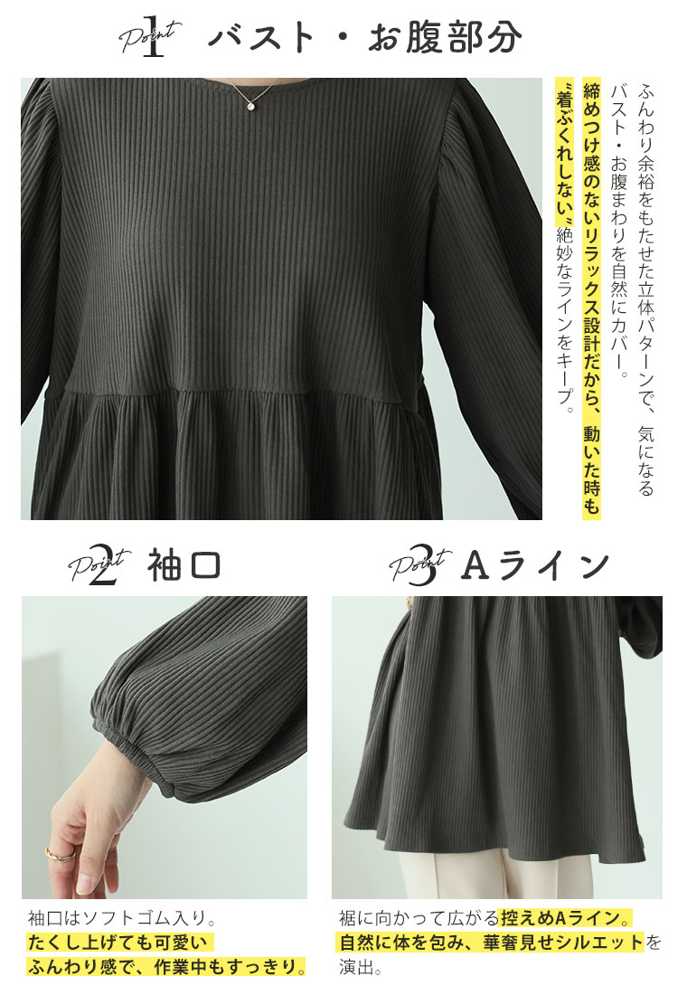 3. 大きいサイズ 【ちょい温シリーズ】 美人に体型カバー ラウンドネック リブ チュニック