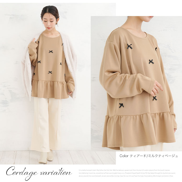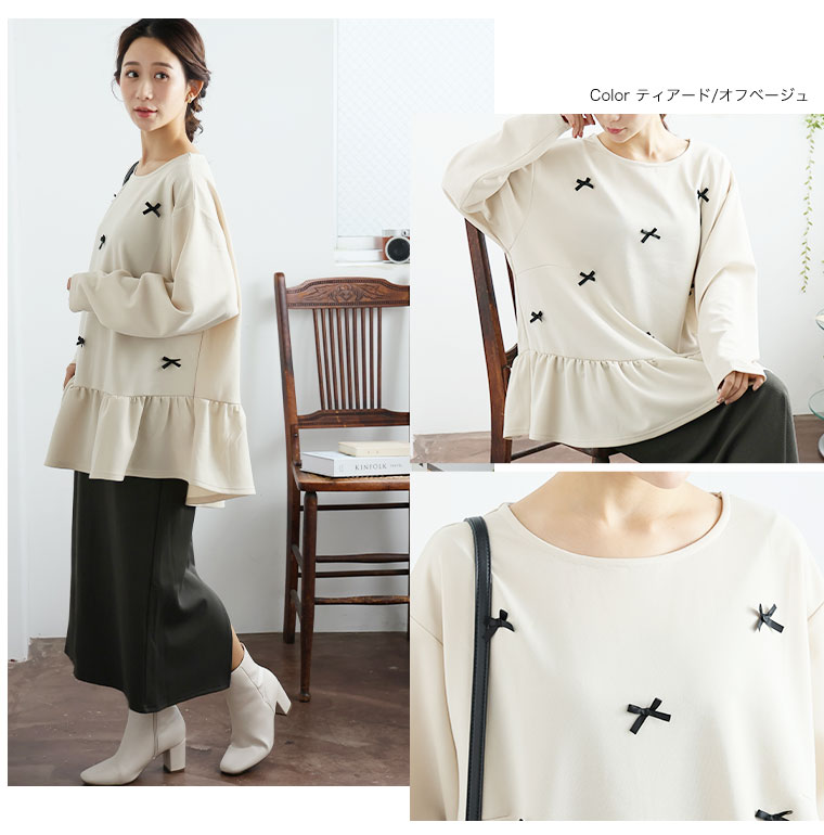 ■着用感:ちょうどいい、■着丈:お尻すっぽり、■バスト:ちょうどいい、■腕回り:ちょうどいい、■袖口:ちょうどいい、■袖丈:長袖、首回りちょうどいい、■ウエスト:-、■ヒップ:-、■太もも:- ●ティアードデザインを着用しました。ややゆったり着られて体型カバーに最適です。お洒落に体型カバーができるので嬉しいです。