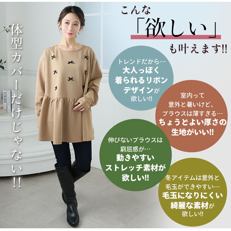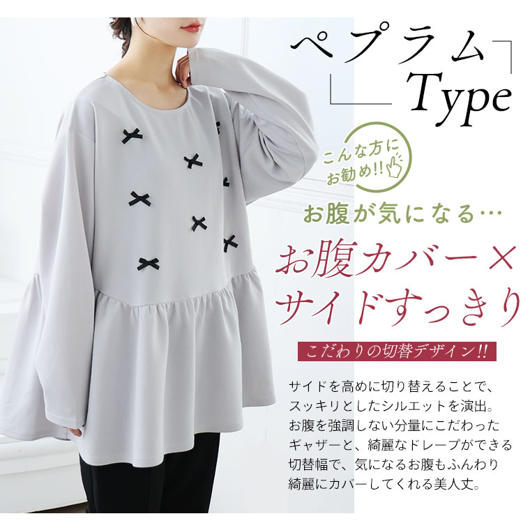 オリジナル LL 3L 4L 5L 6L 長袖 冬 冬物 冬服 お腹 胸回り お腹&胸のお悩み別対応! 選べる2デザイン 暑がりサンにおススメ 上品レディなほの甘美人ポンチ ティアード ペプラム チュニック【ライブ】