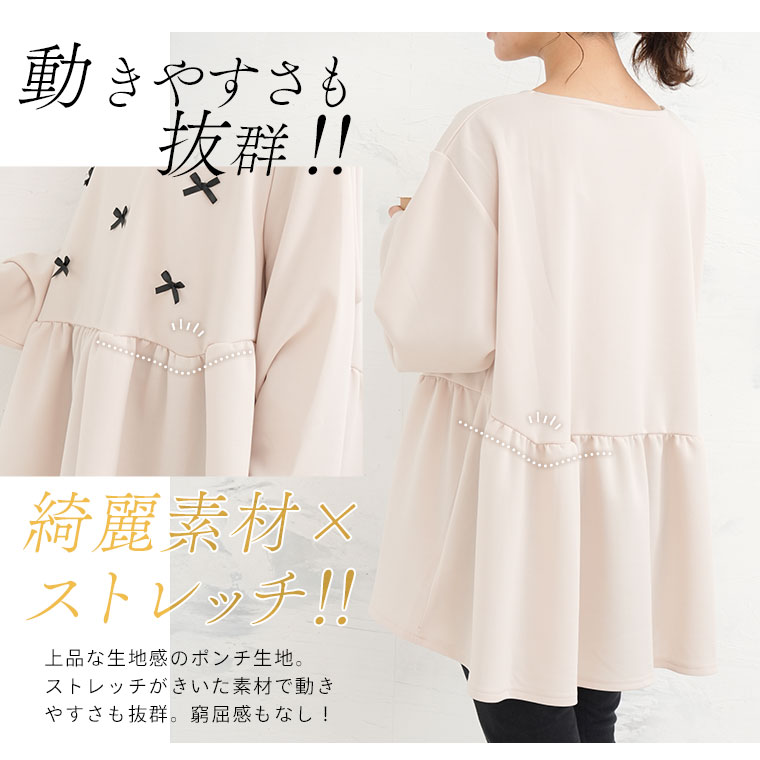 4. 大きいサイズ お腹&胸のお悩み別対応! 選べる2デザイン 暑がりサンにおススメ 上品レディなほの甘美人ポンチ ティアード ペプラム チュニック【ライブ】