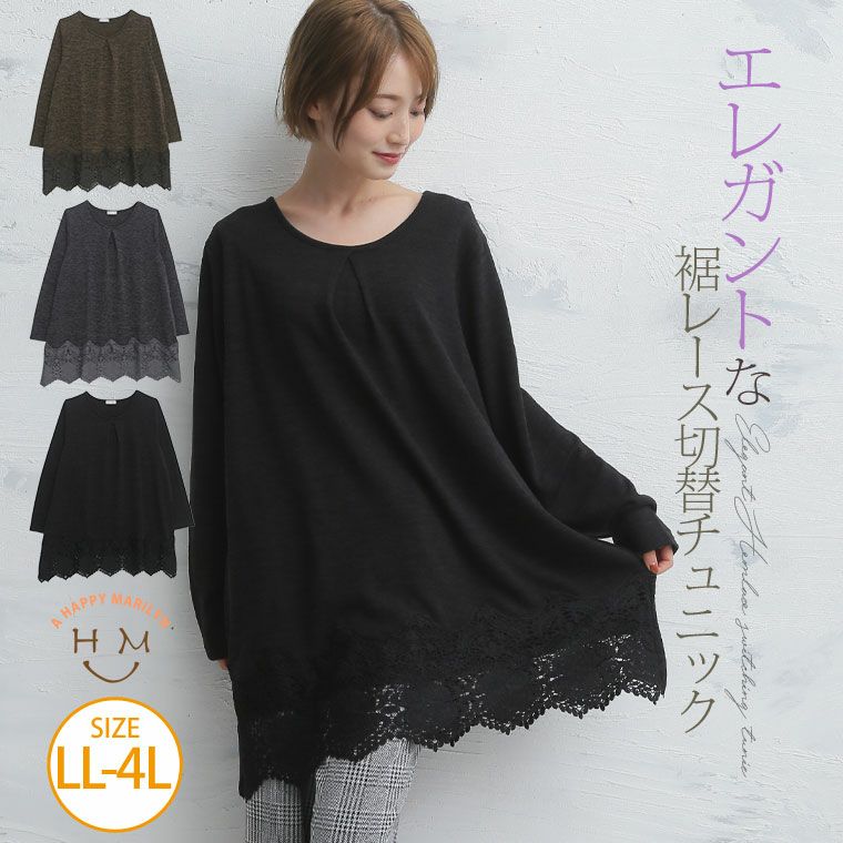 6. 大きいサイズ 裾レース 切替 チュニック | 大きいサイズの通販ならハッピーマリリン