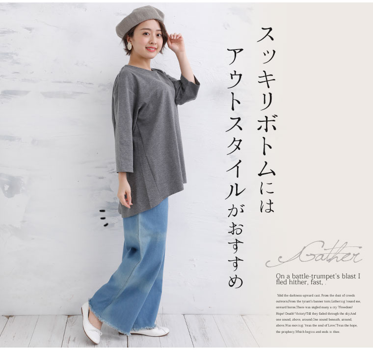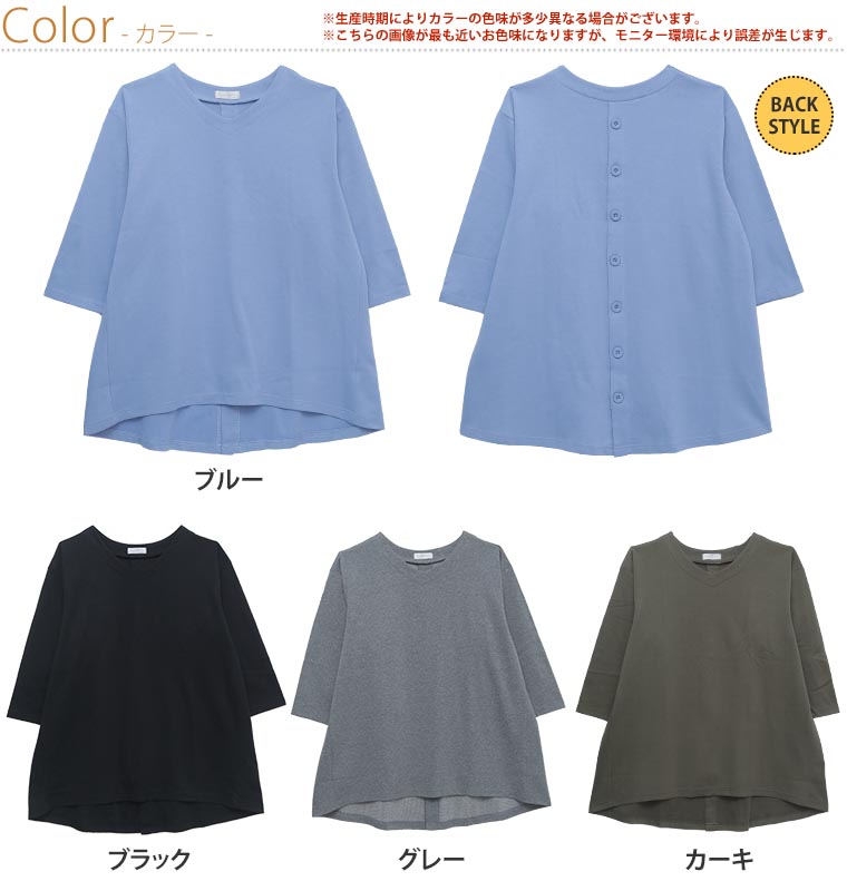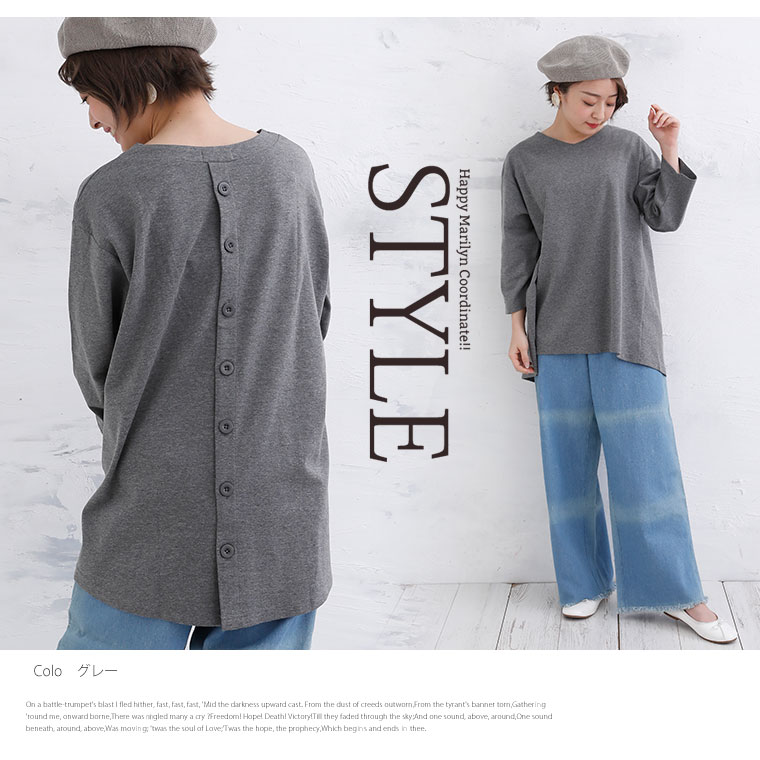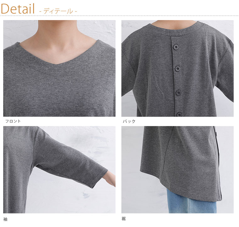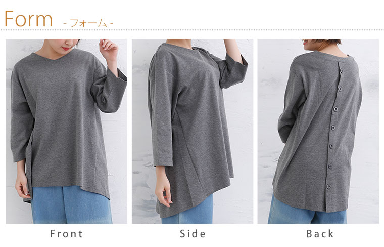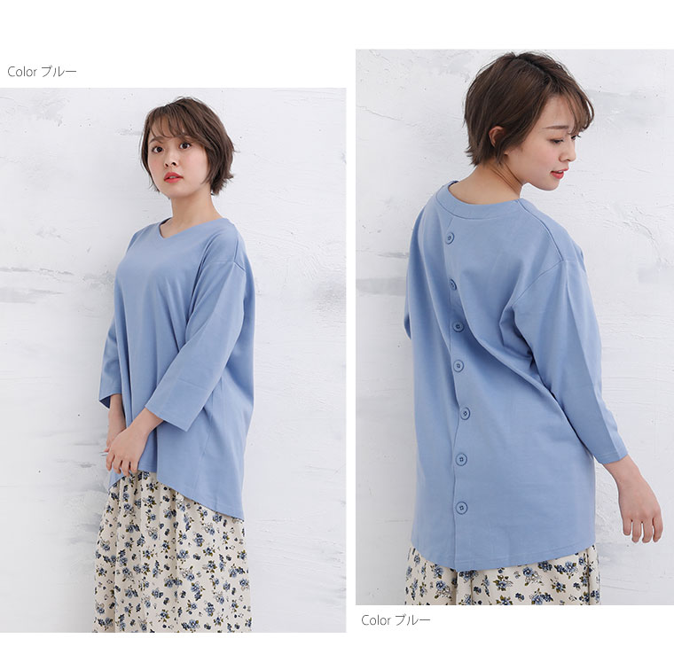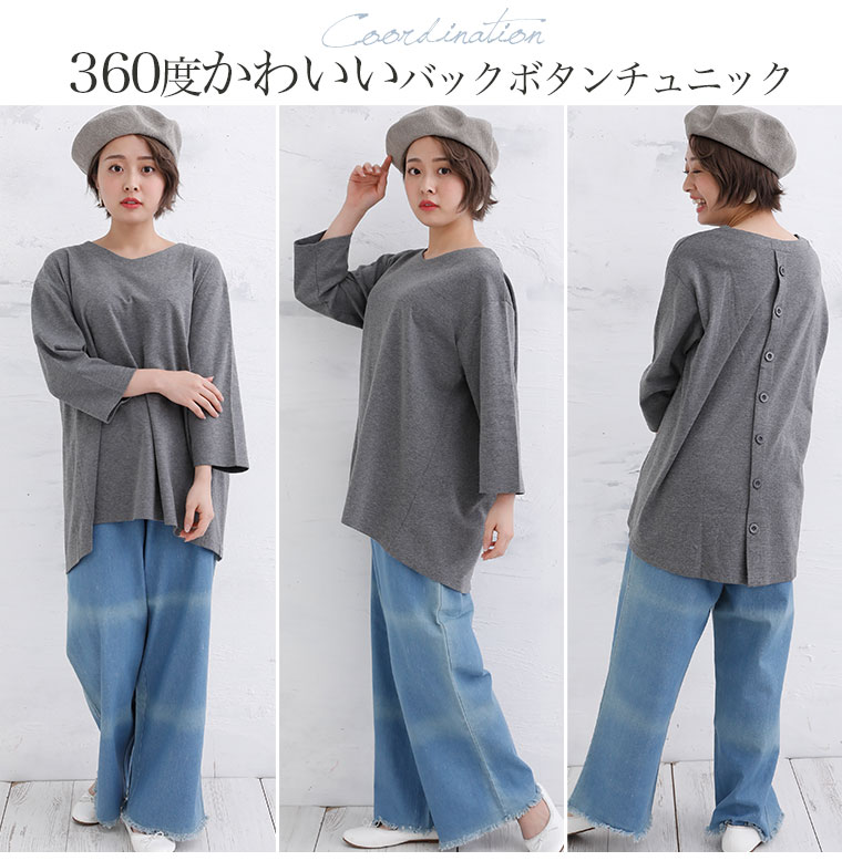 前後差のある裾で体型カバー!バックボタンデザインチュニック