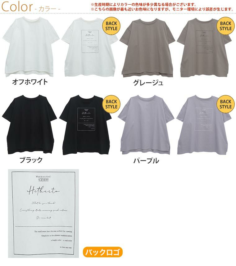 前はシンプル、後ろは大胆に上品なフォントで大人っぽく着こなせるルーズなバックロゴ