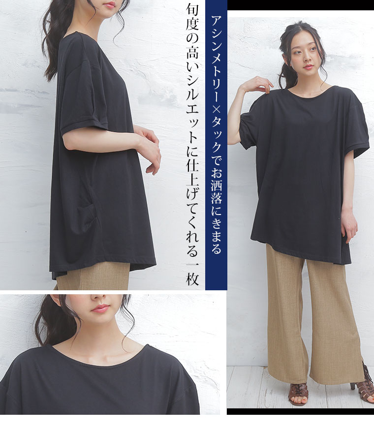 片タックで差がつく裾アシメチュニック