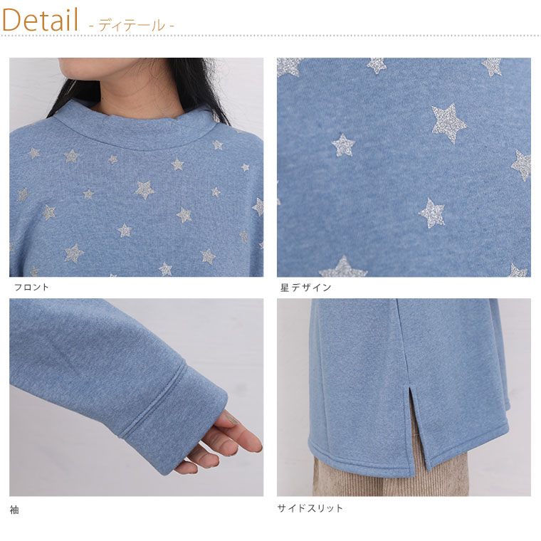 4. 大きいサイズ 裏起毛 ラメ 星 プチハイ チュニック