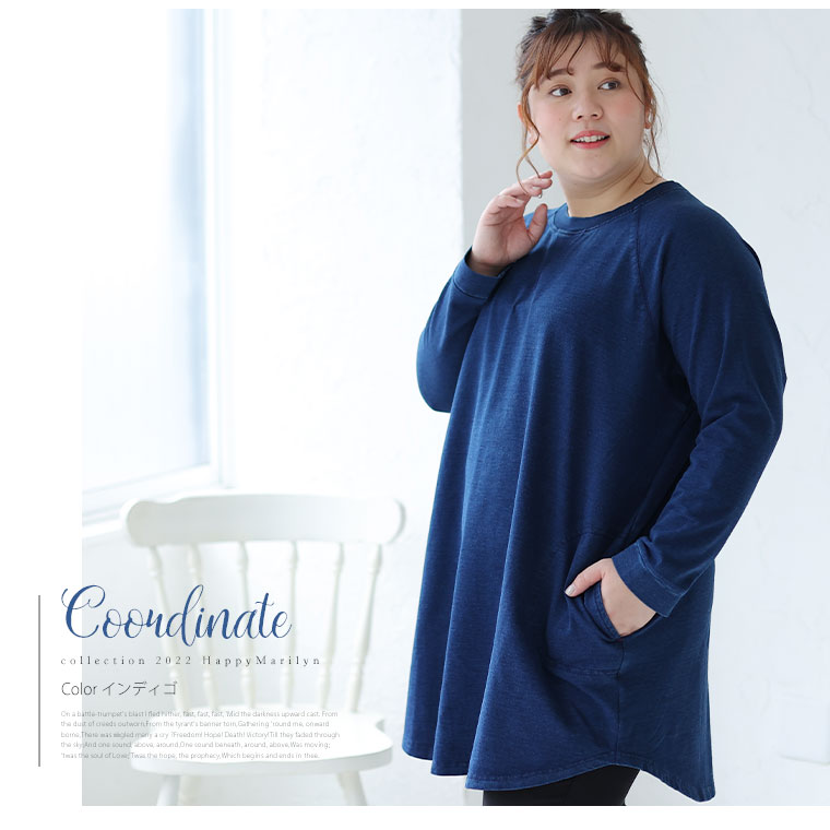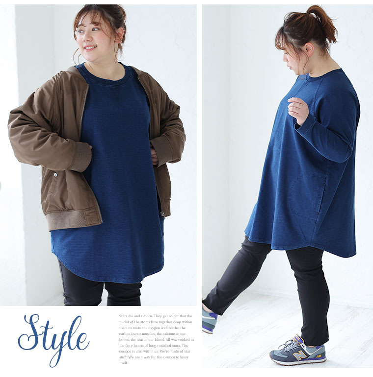 3. 大きいサイズ リブ付き 長袖 ワンピース